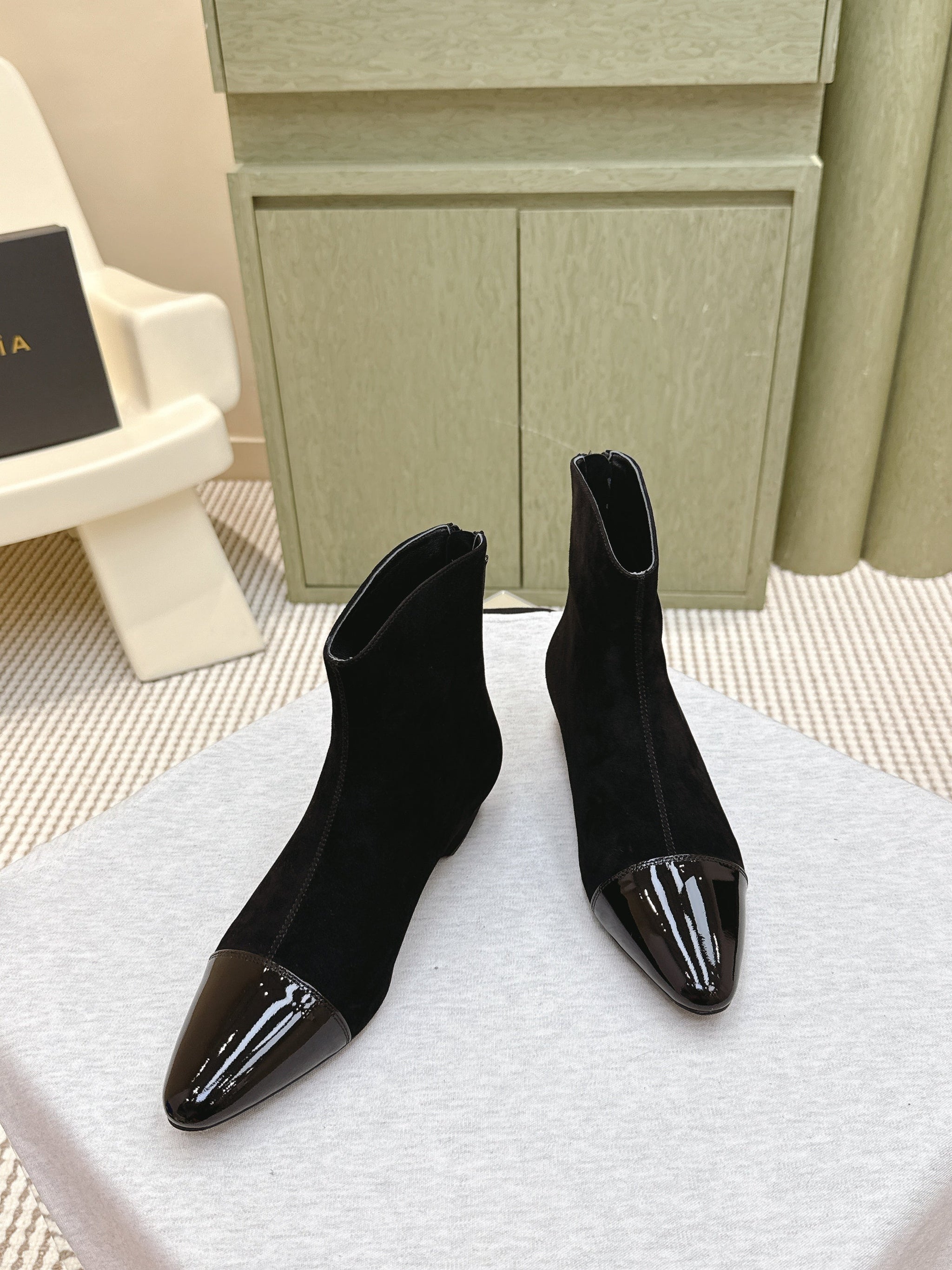 ALAIA 26S ANKLE BOOTS IN BLACK SUEDE AND GLOSSY CALFSKIN