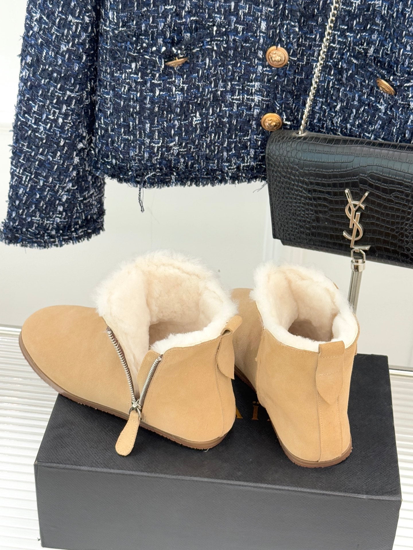 ALAIA 26S SNOW BOOTS IN DARK BEIGE SUEDE AND WOOL