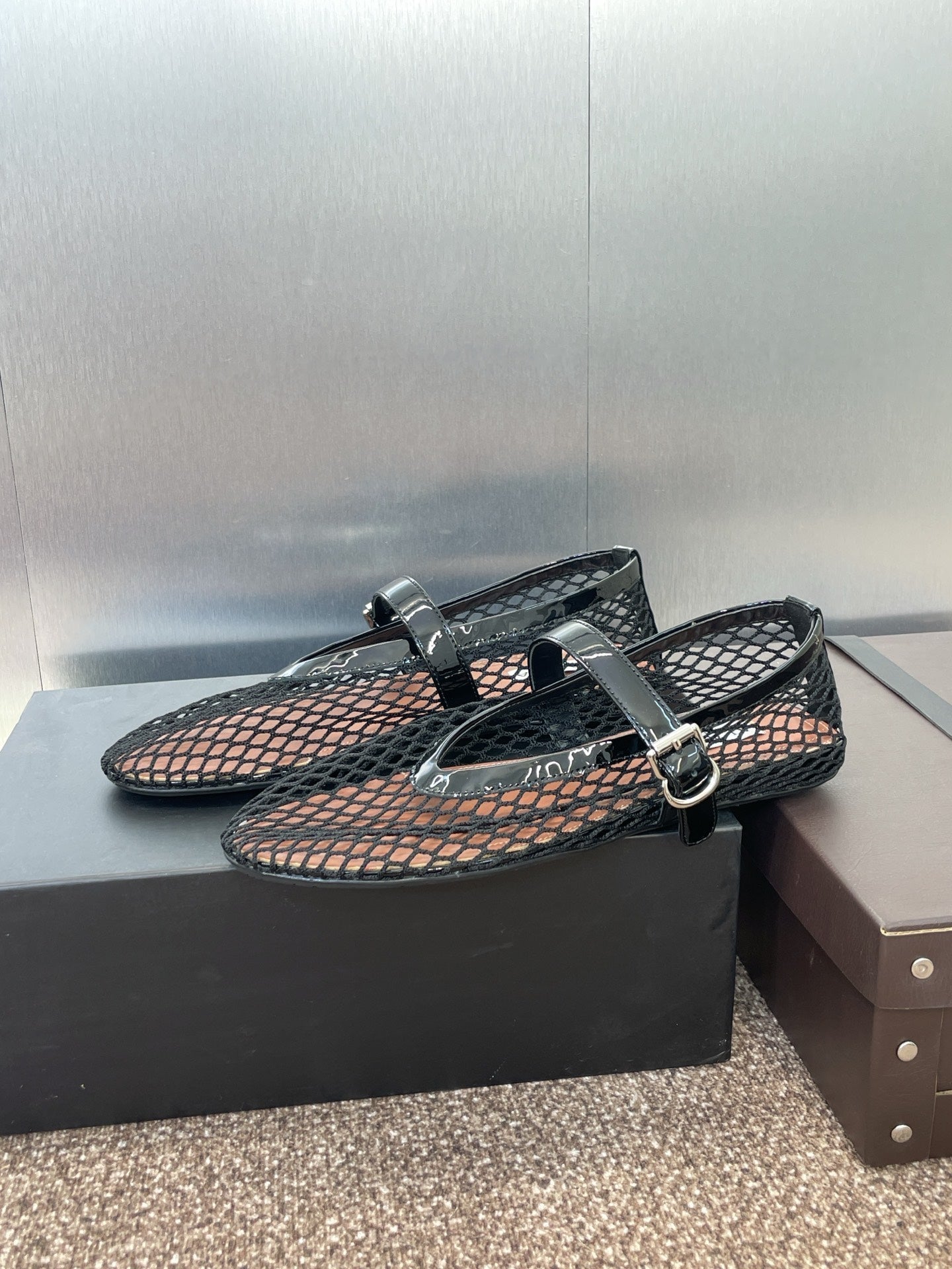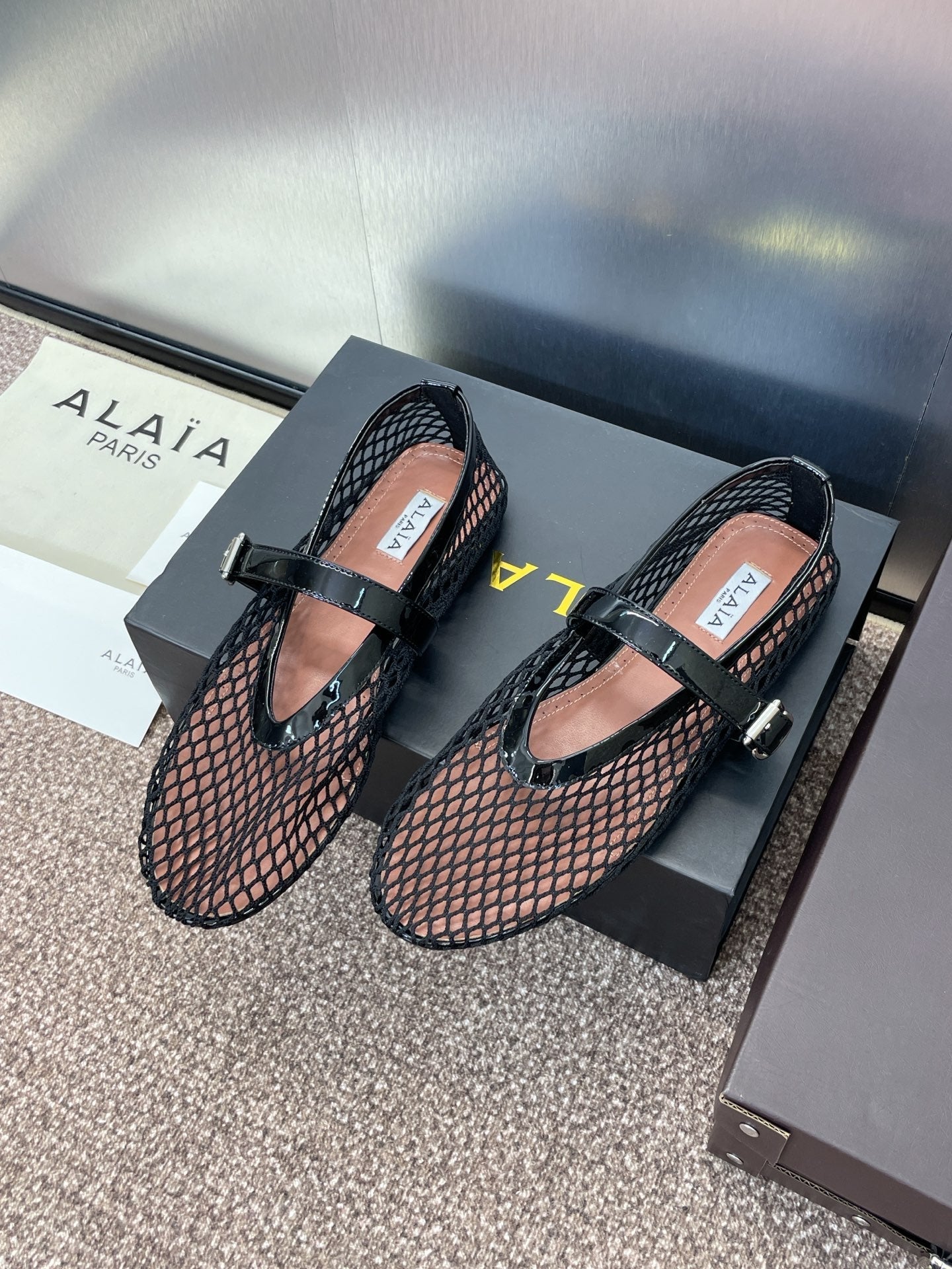 ALAIA MARY JANE FLAT 25S IN BLACK MESH CALFSKIN