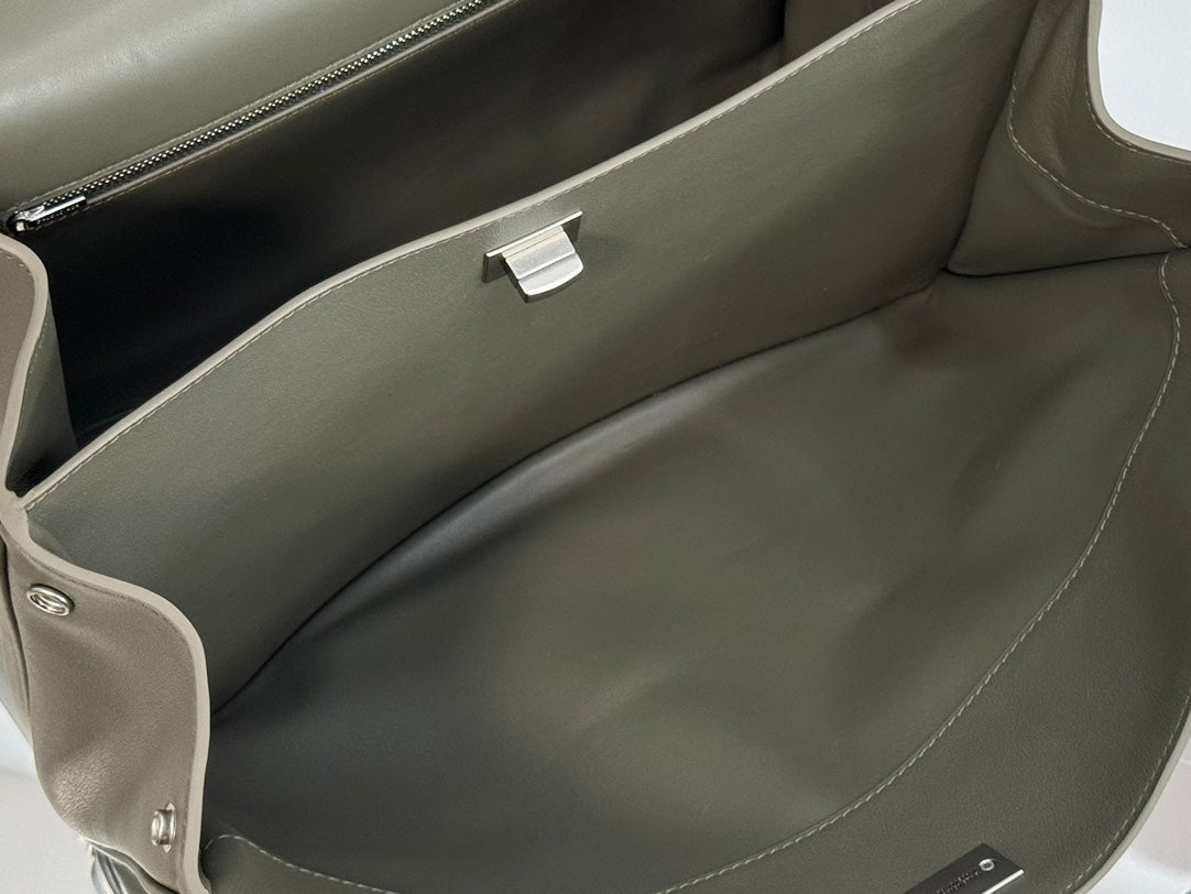 RODEO MEDIUM BAG 35 IN KHAKI GREEN SMOOTH CALFSKIN SILVER HARDWARE