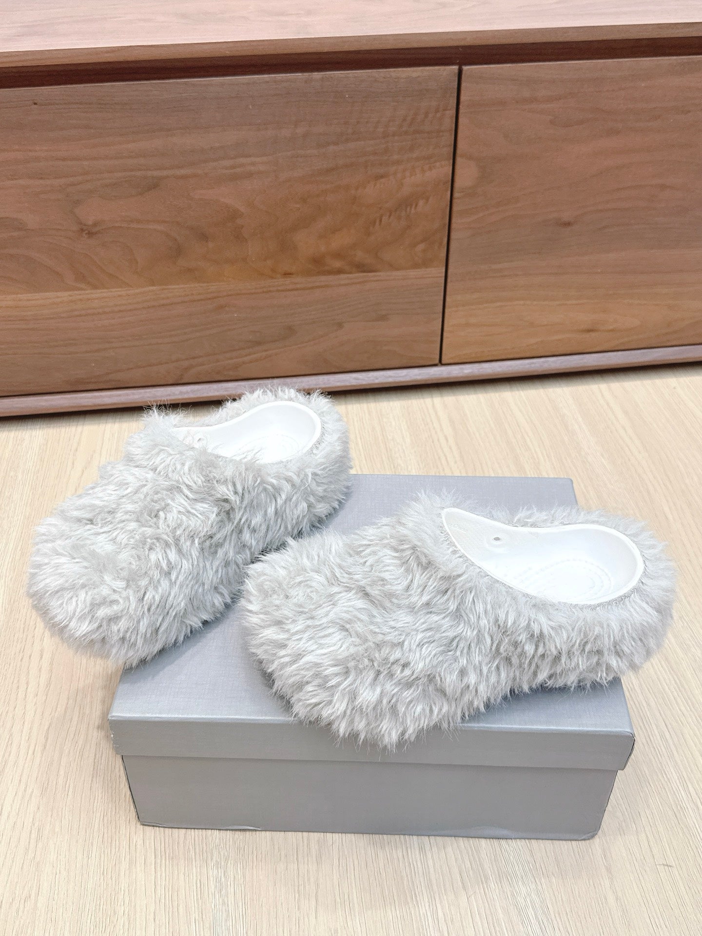 BALENCIAGA 25S MULES IN IVORY WHITE FAUX FUR