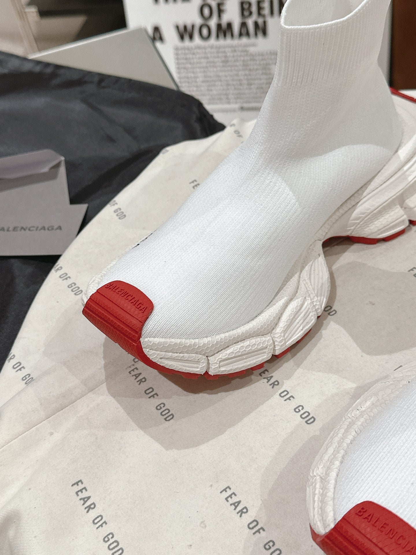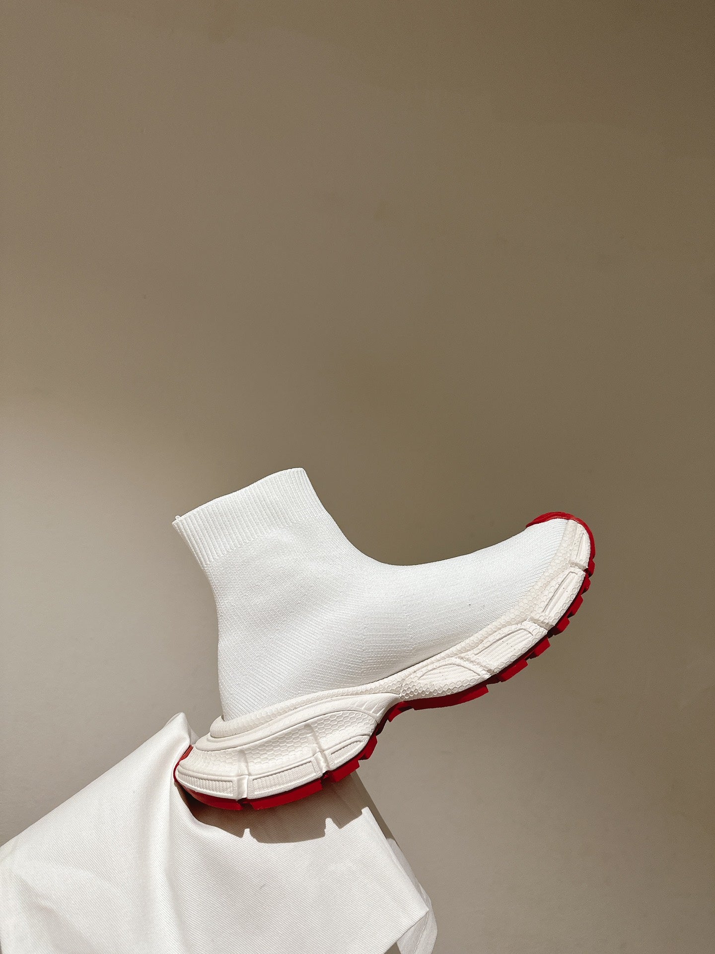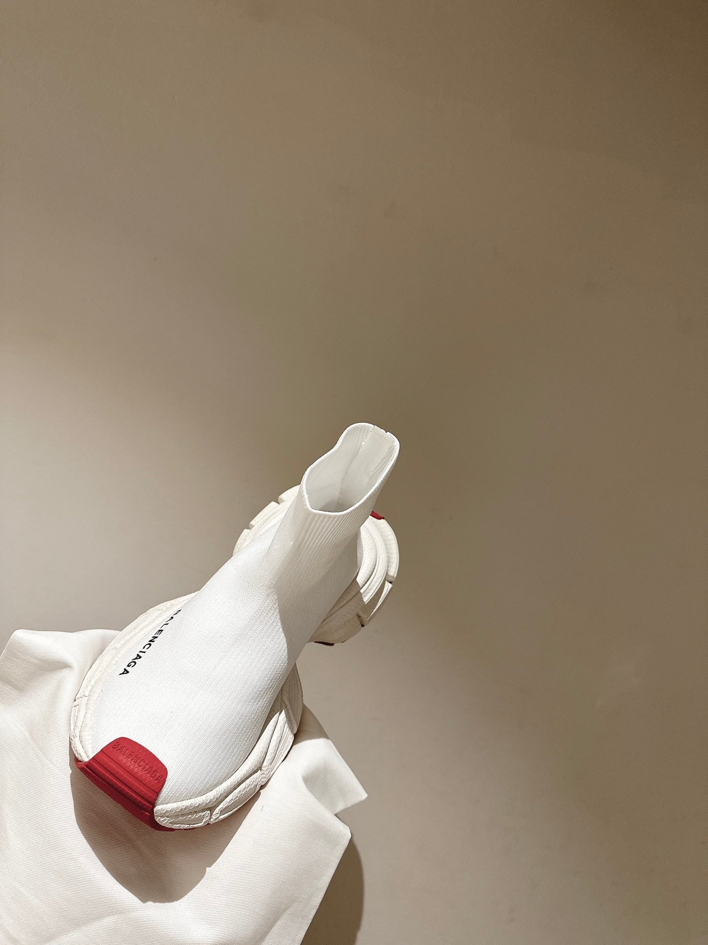 BALENCIAGA 25S SPEED TRAINER SNEAKERS 55 MM IN WHITE AND RED KNIT