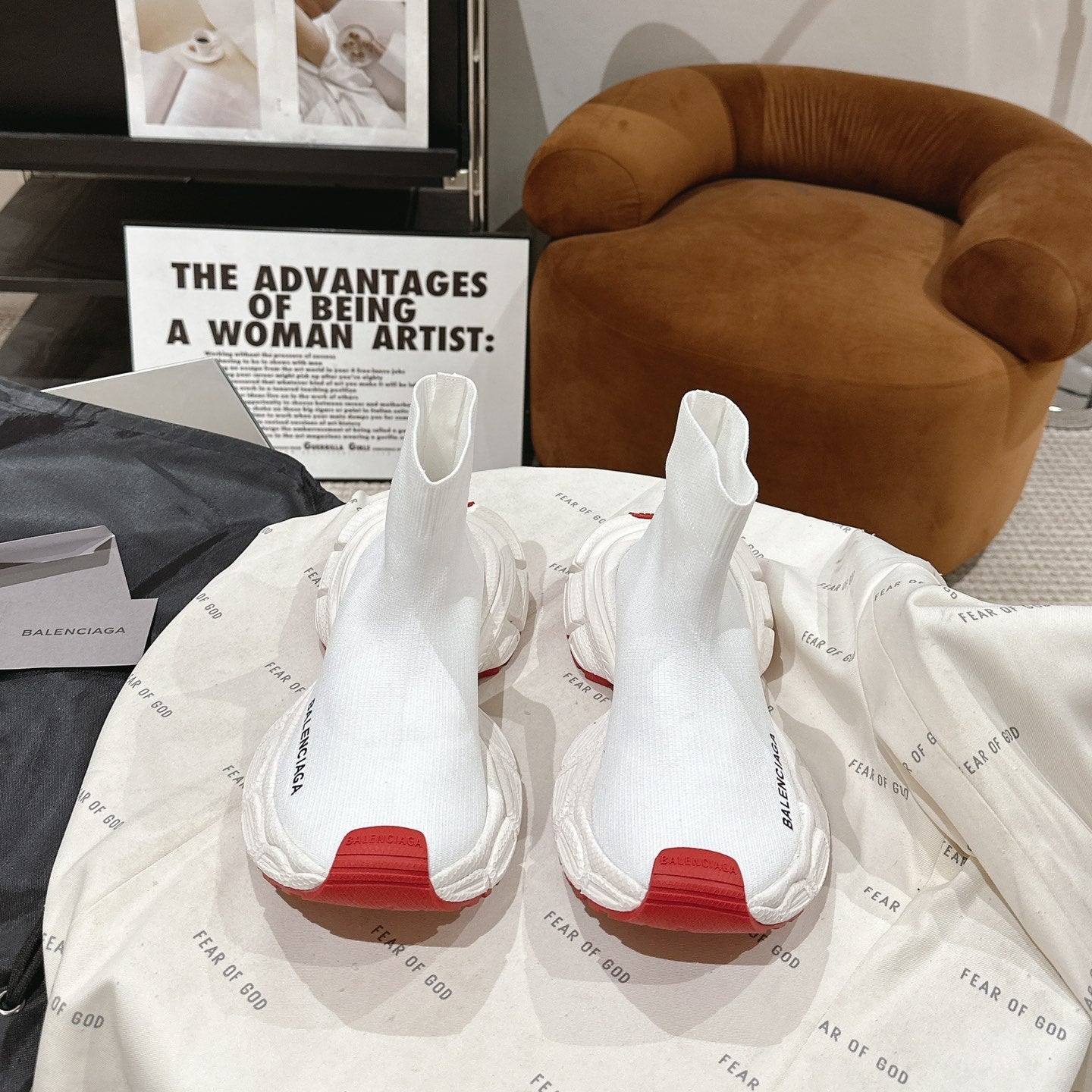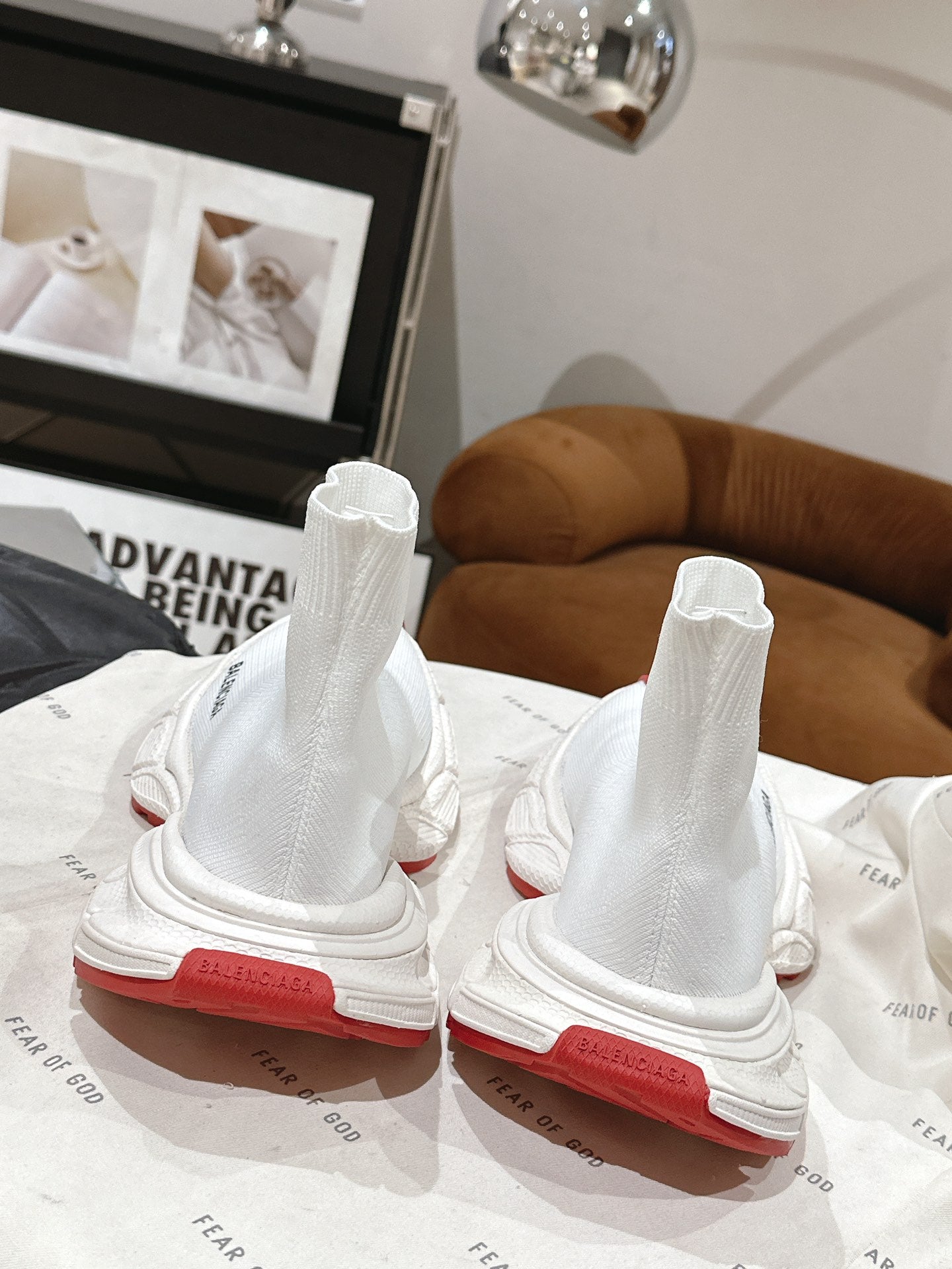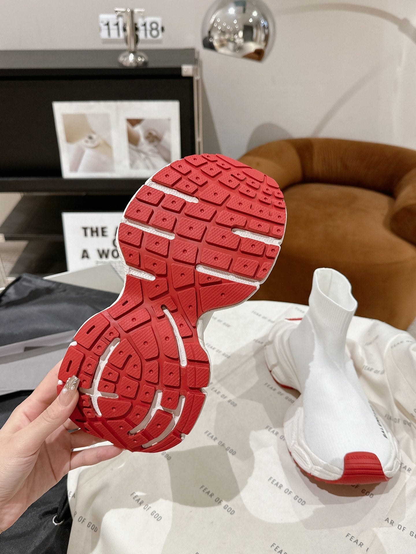 BALENCIAGA 25S SPEED TRAINER SNEAKERS 55 MM IN WHITE AND RED KNIT