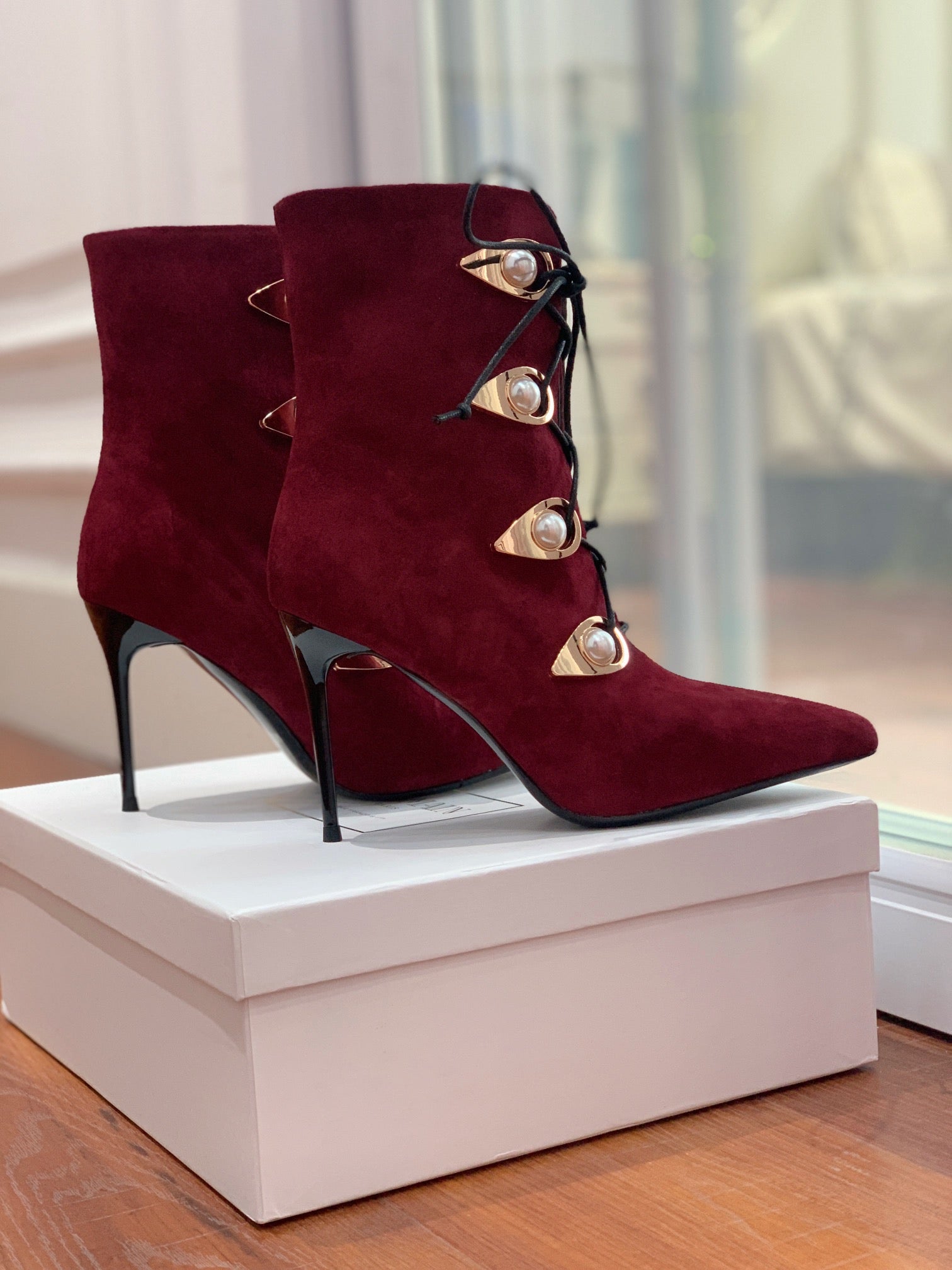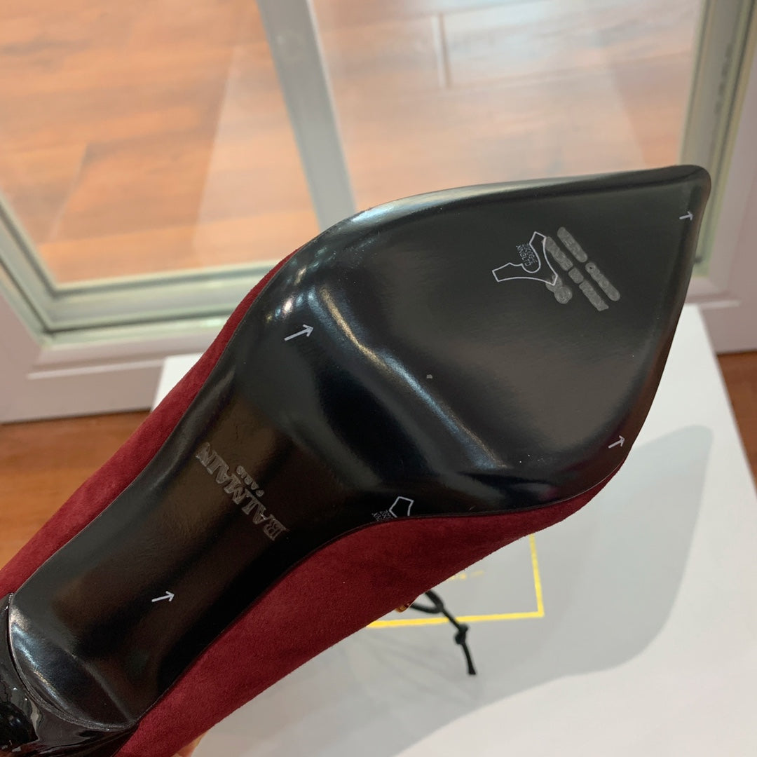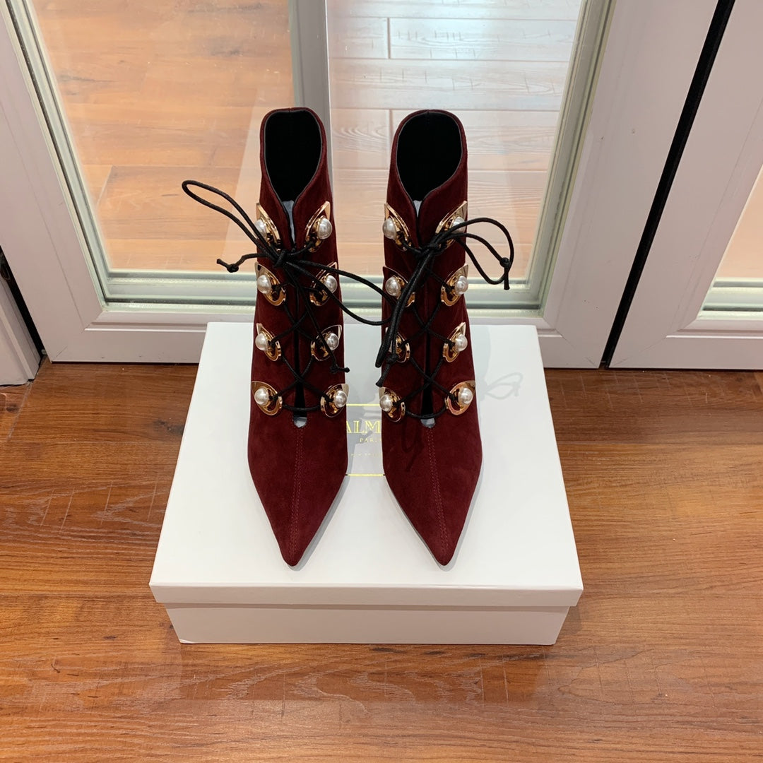 BALMAIN 26S BOOT 95 MM IN DARK RED SUEDE PEARL BUTTON
