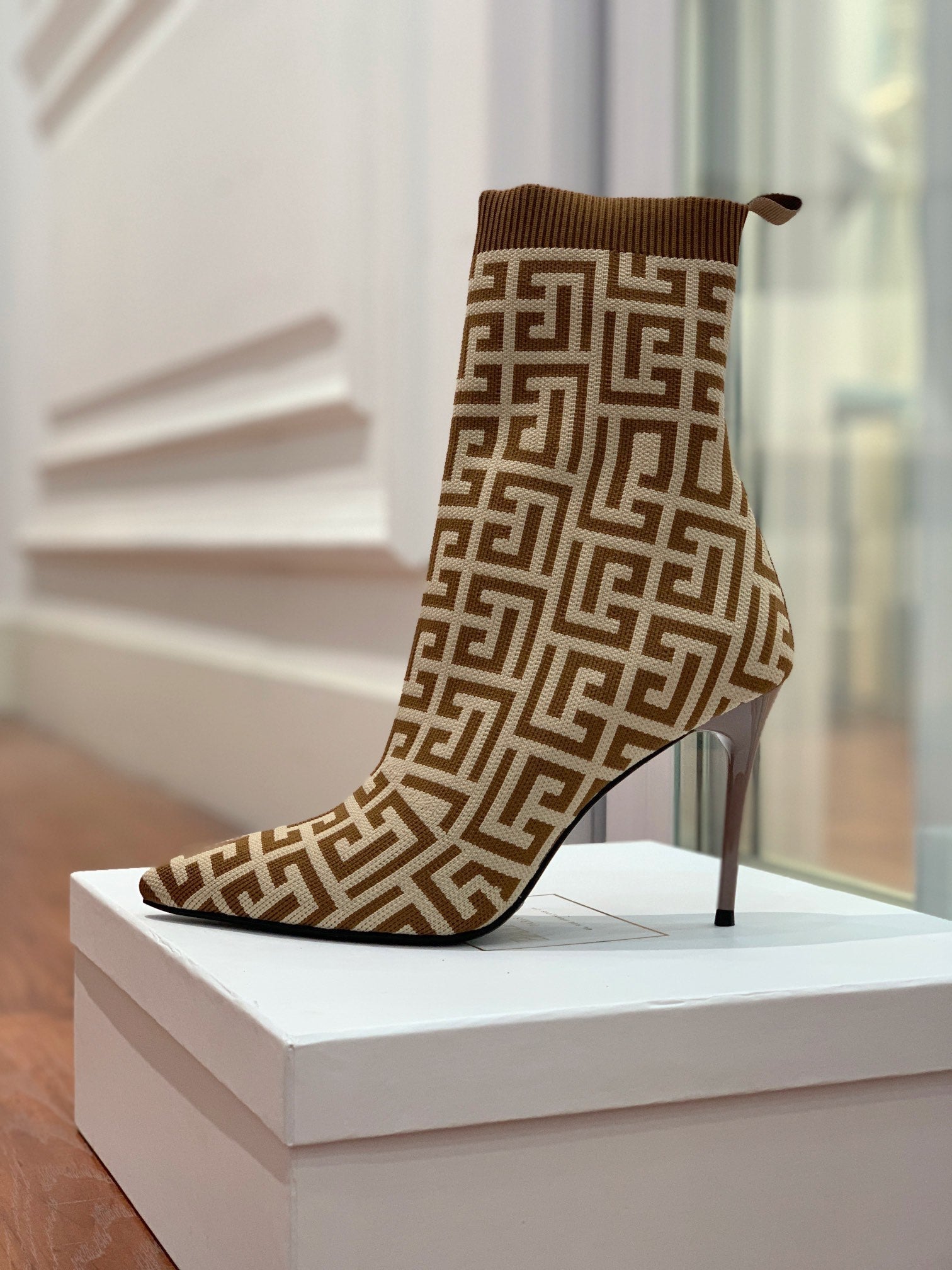 BALMAIN 26S BOOTS 105 MM IN BROWN AND BEIGE FLYKNIT STYLE 10