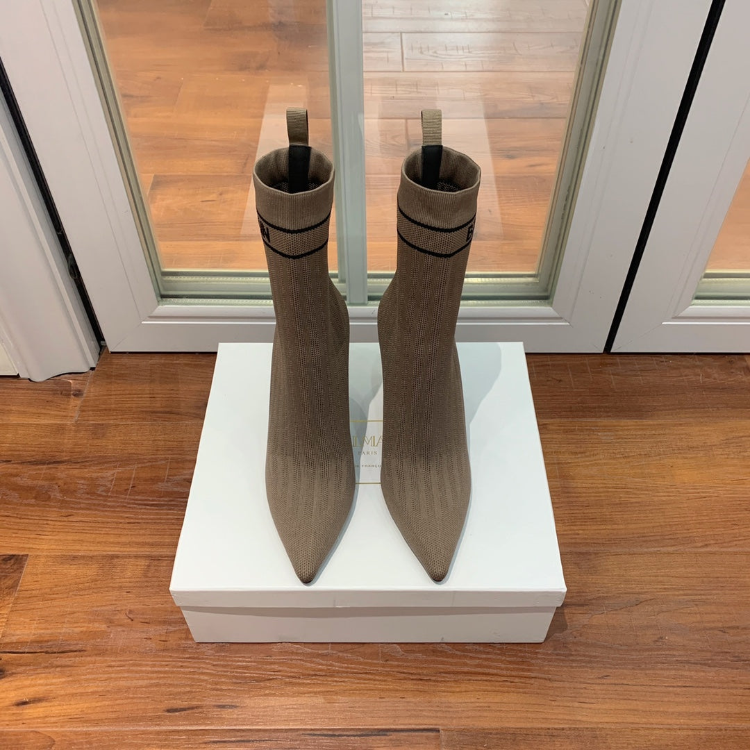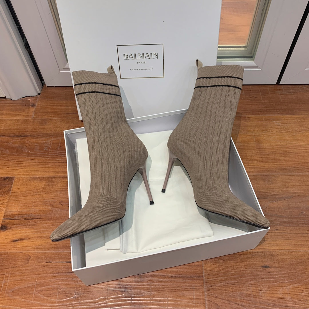 BALMAIN 26S BOOTS 105 MM IN TAUPE BROWN FLYKNIT STYLE 17
