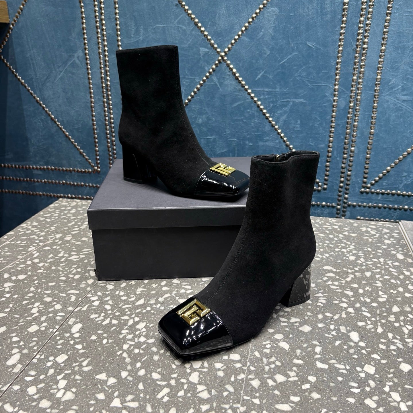 BALMAIN 26S BOOTS 65 MM IN BLACK SUEDE AND CALFSKIN