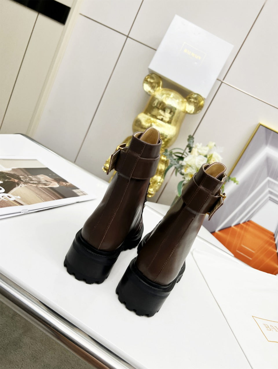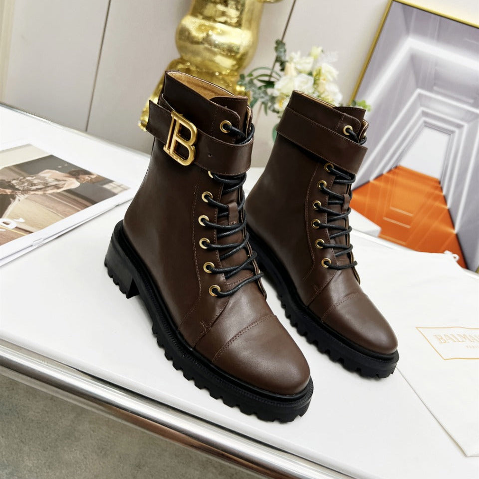 BALMAIN 26S BOOTS IN DARK BROWN CALFSKIN
