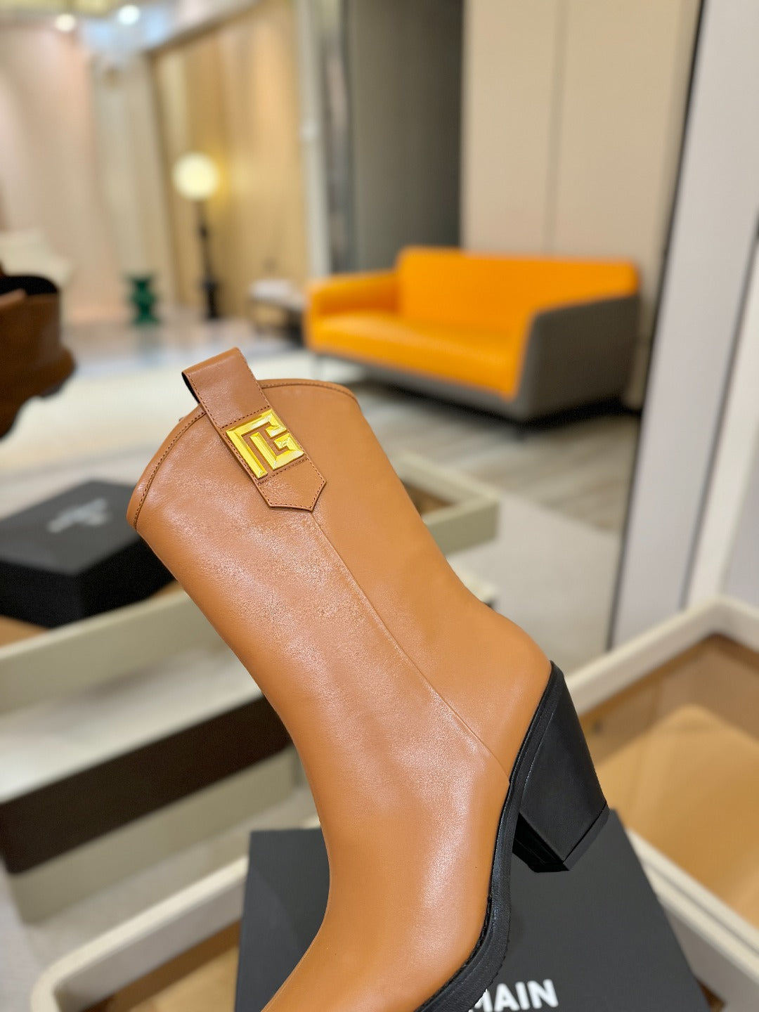BALMAIN 26S COWBOY ANKLE BOOTS 65 MM IN BROWN CALFSKIN