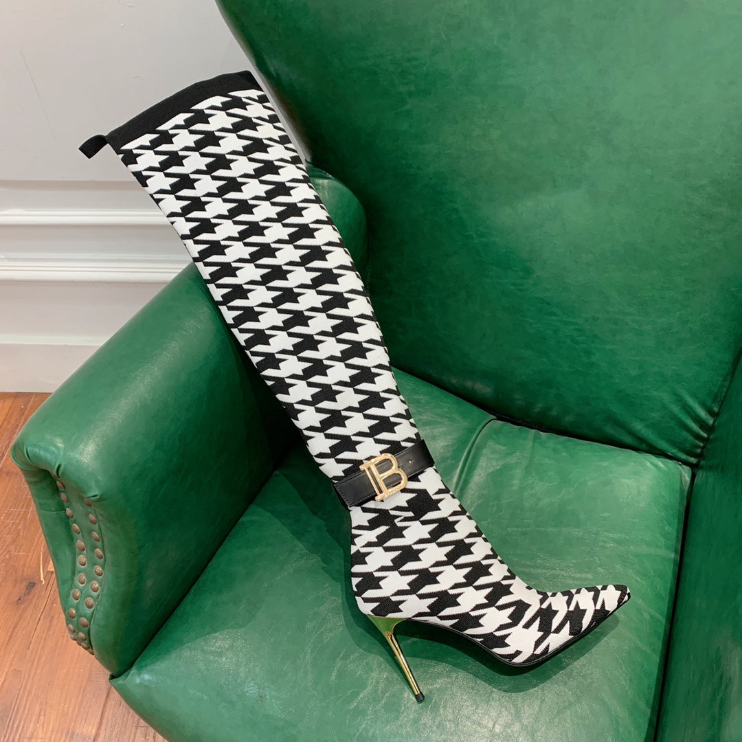 BALMAIN 26S HIGH-TOP BOOTS 105 MM IN BLACK AND WHITE FLYKNIT STYLE 3
