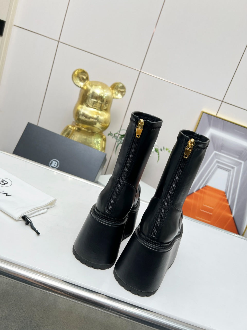 BALMAIN 26S PLATFORM BOOTS 100 MM IN BLACK CALFSKIN