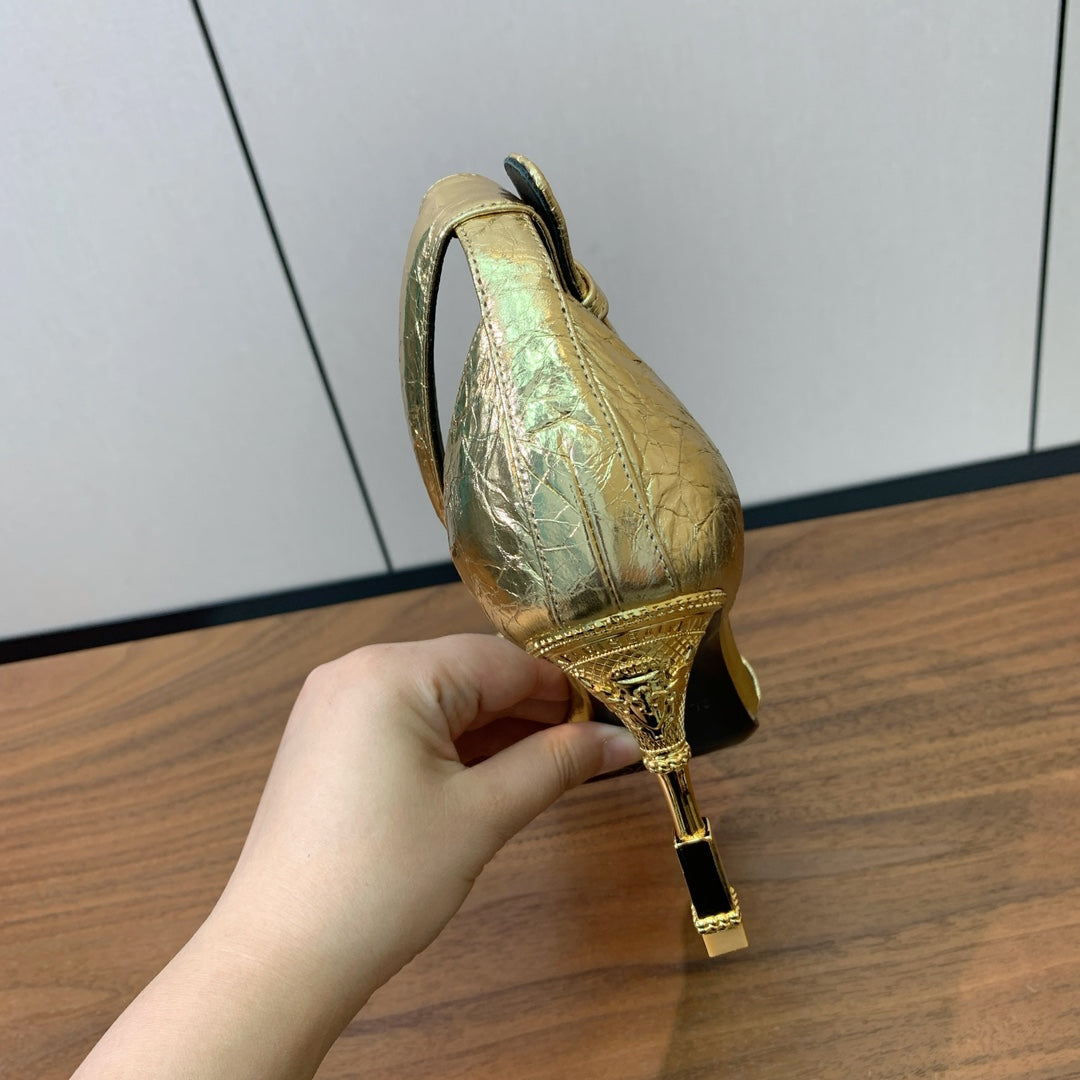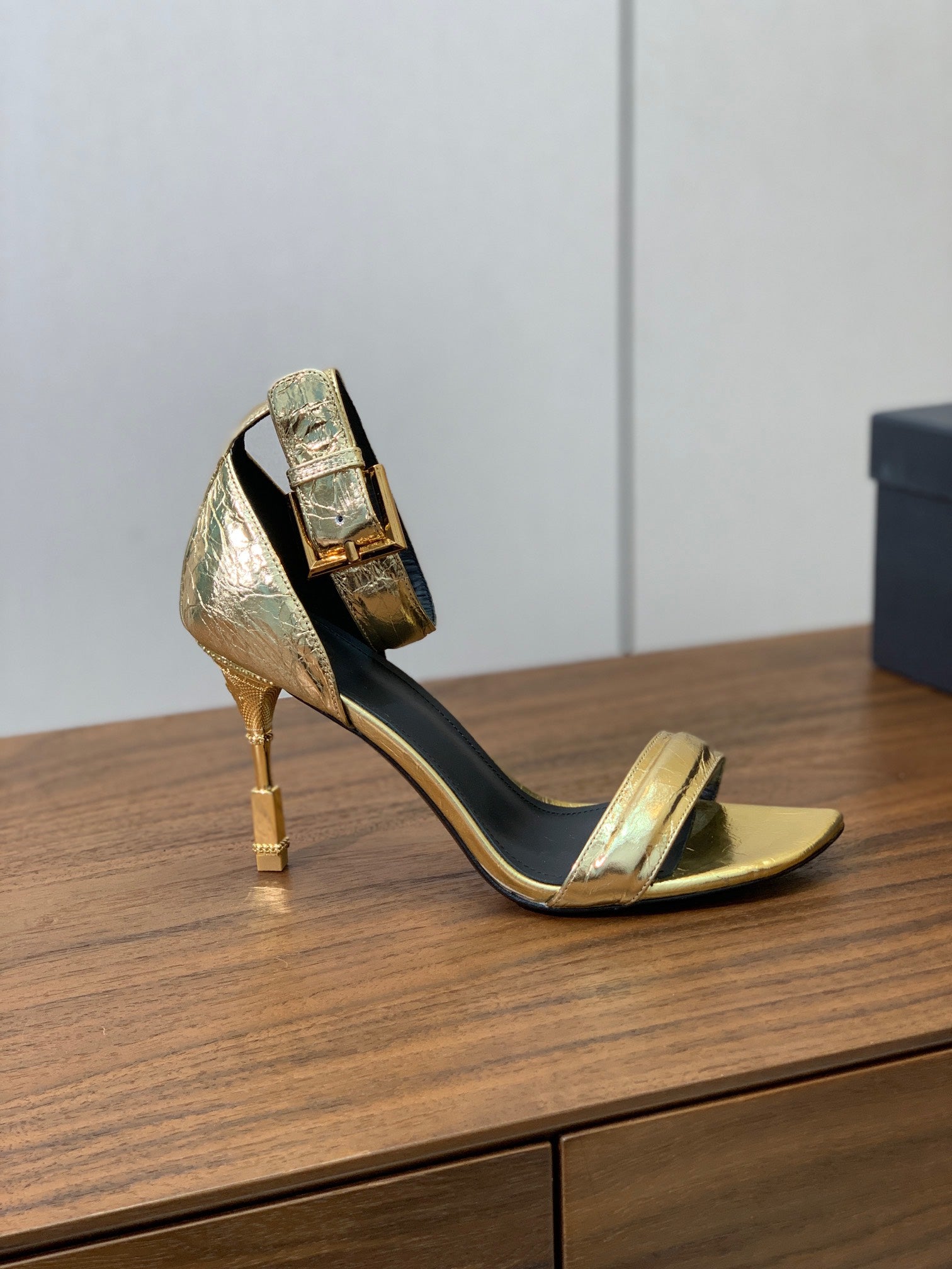 BALMAIN 25S SQUARE STRAP HIGH HEELS 100MM IN GOLD CALFSKIN