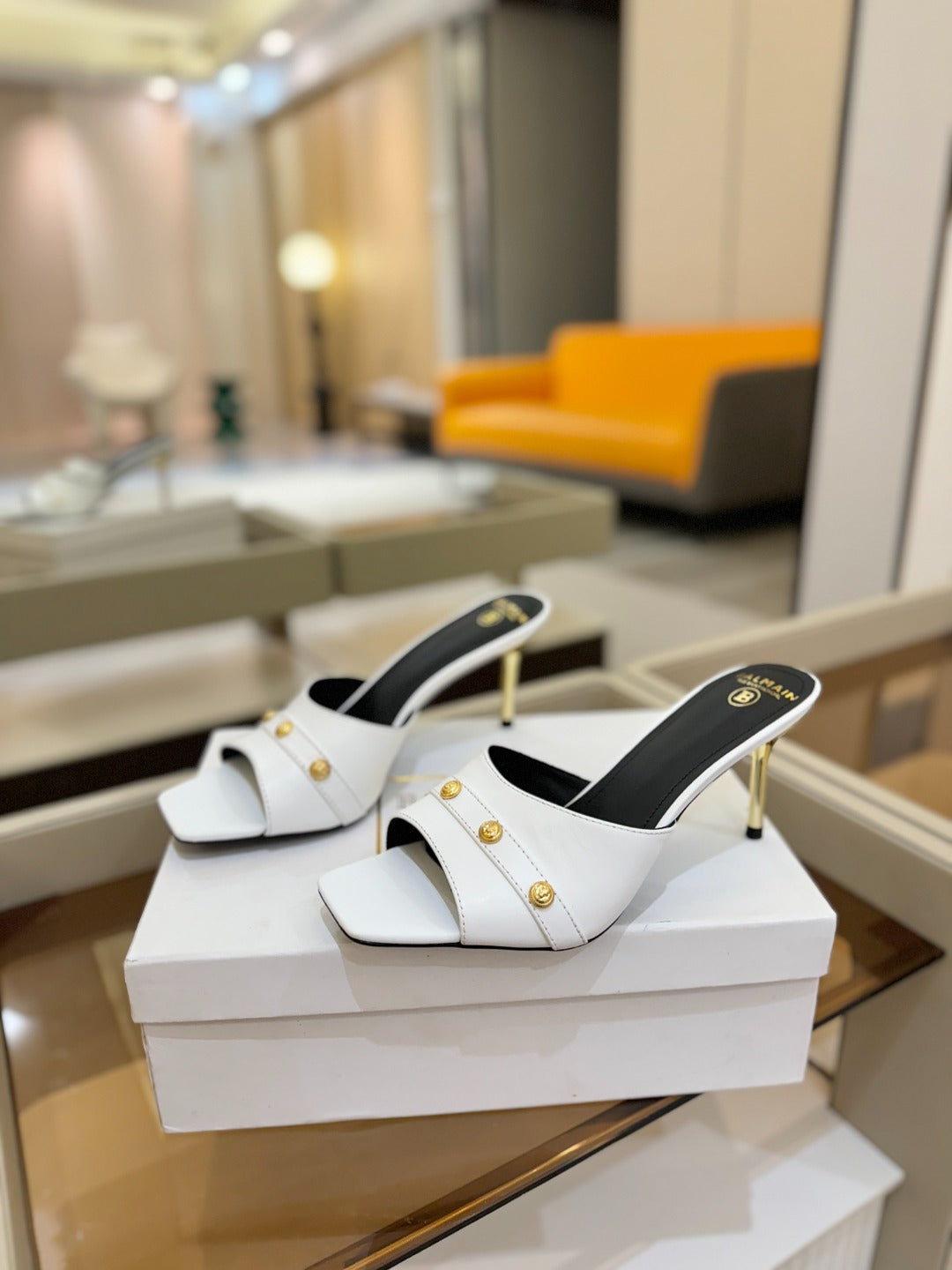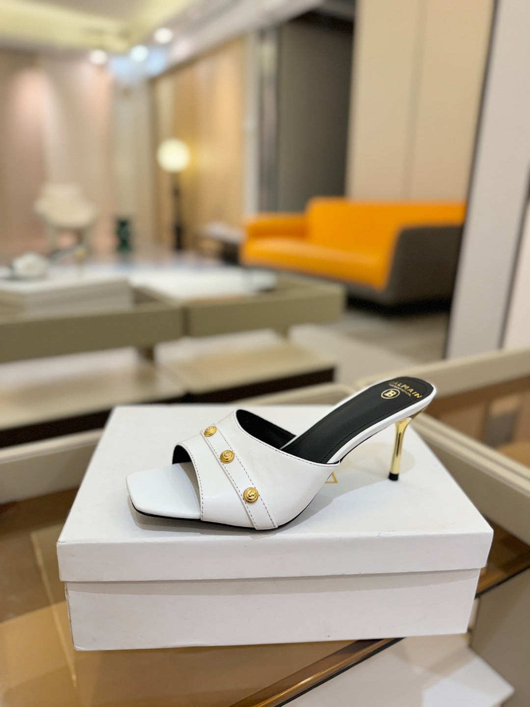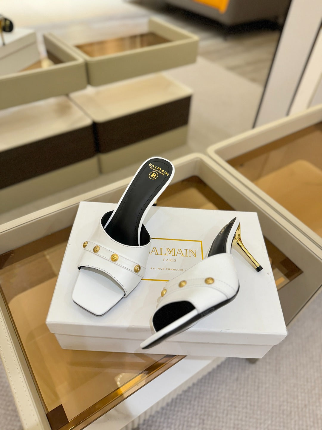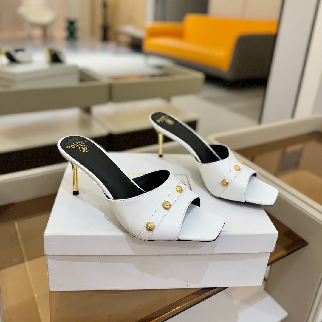 BALMAIN 26S HEELED SANDALS 70 MM IN WHITE CALFSKIN