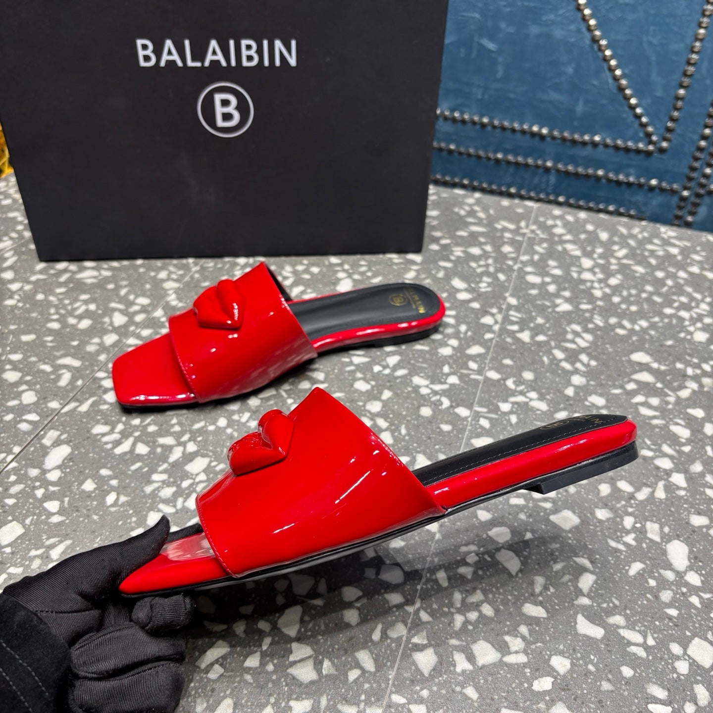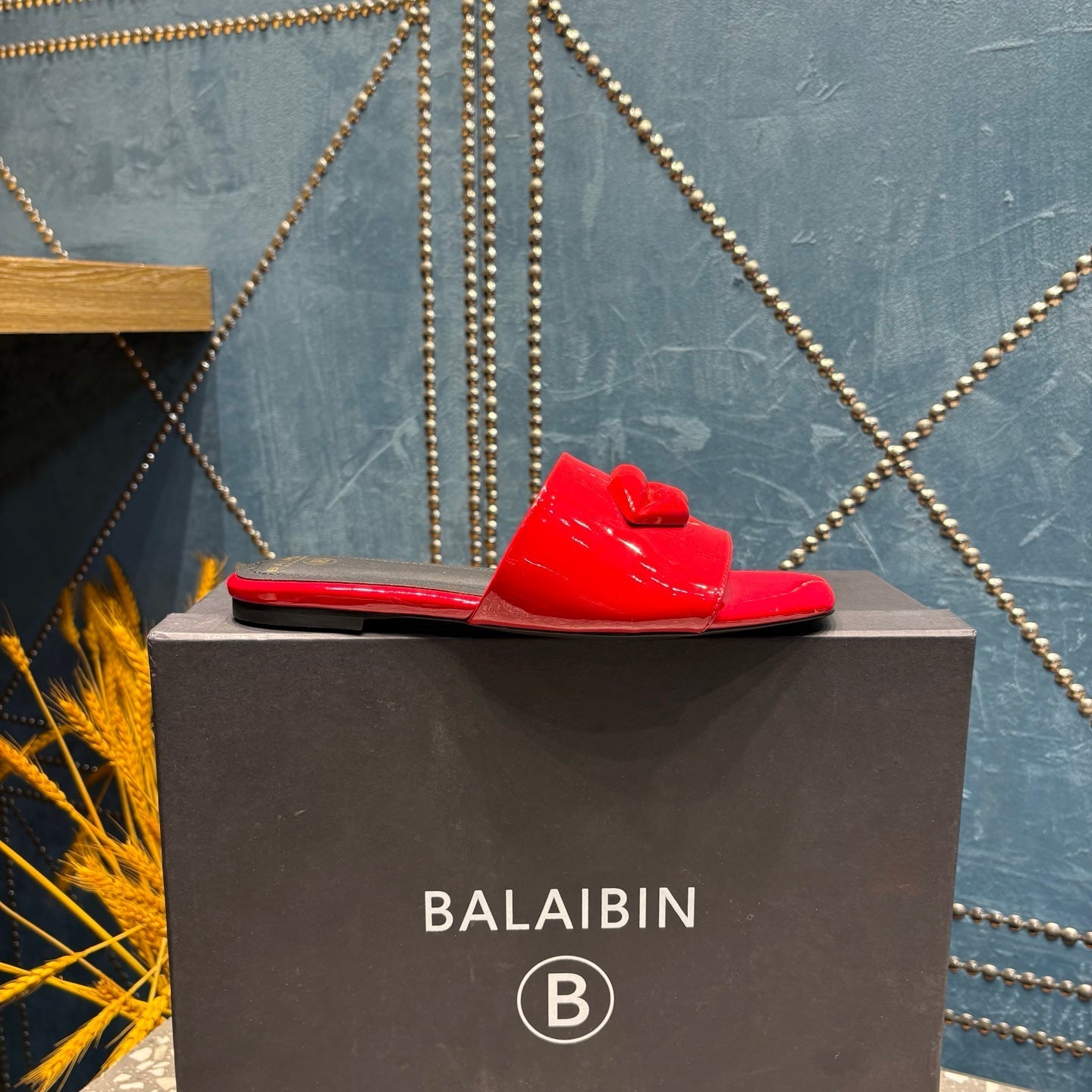 BALMAIN 26S SLIPPERS IN RED GLOSSY CALFSKIN