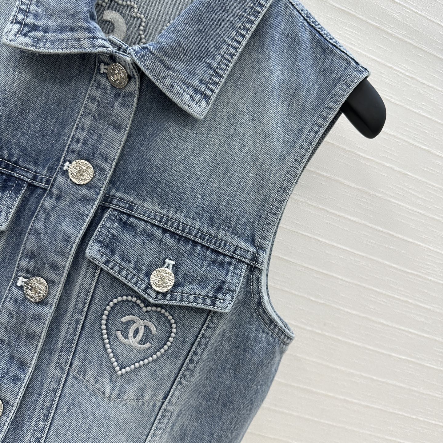 CC 25 Embroidered Vest Jacket Blue Denim Cotton