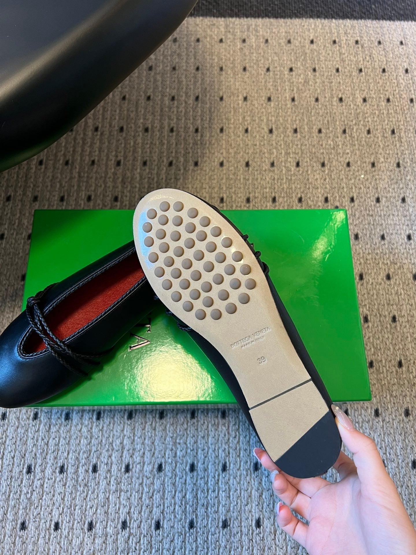 BOTTEGA VENETA 26S ESPADRILLE BALLET FLATS IN BLACK LAMBSKIN