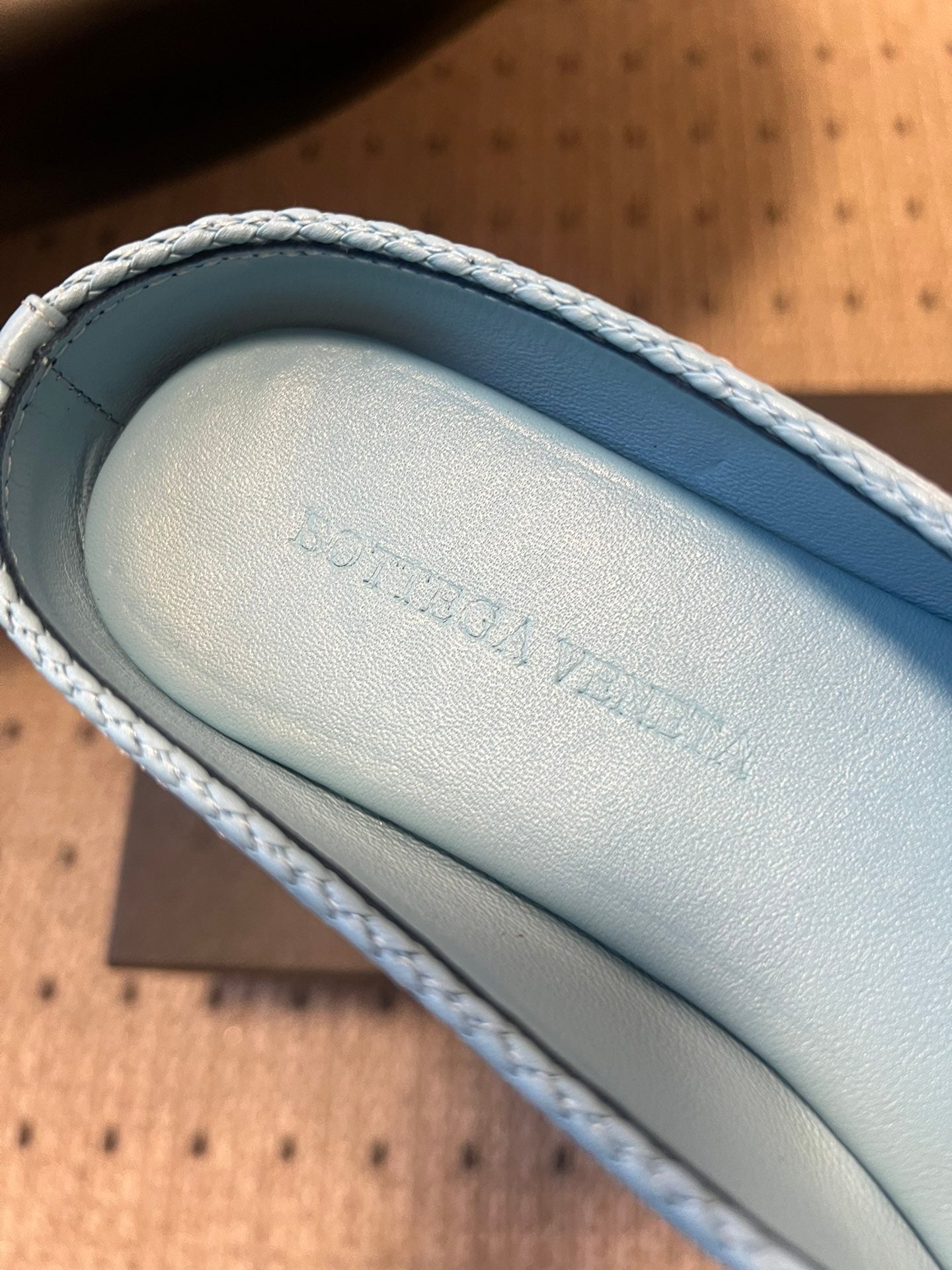 BOTTEGA VENETA 26S FLAT MULES IN BLUE LAMBSKIN