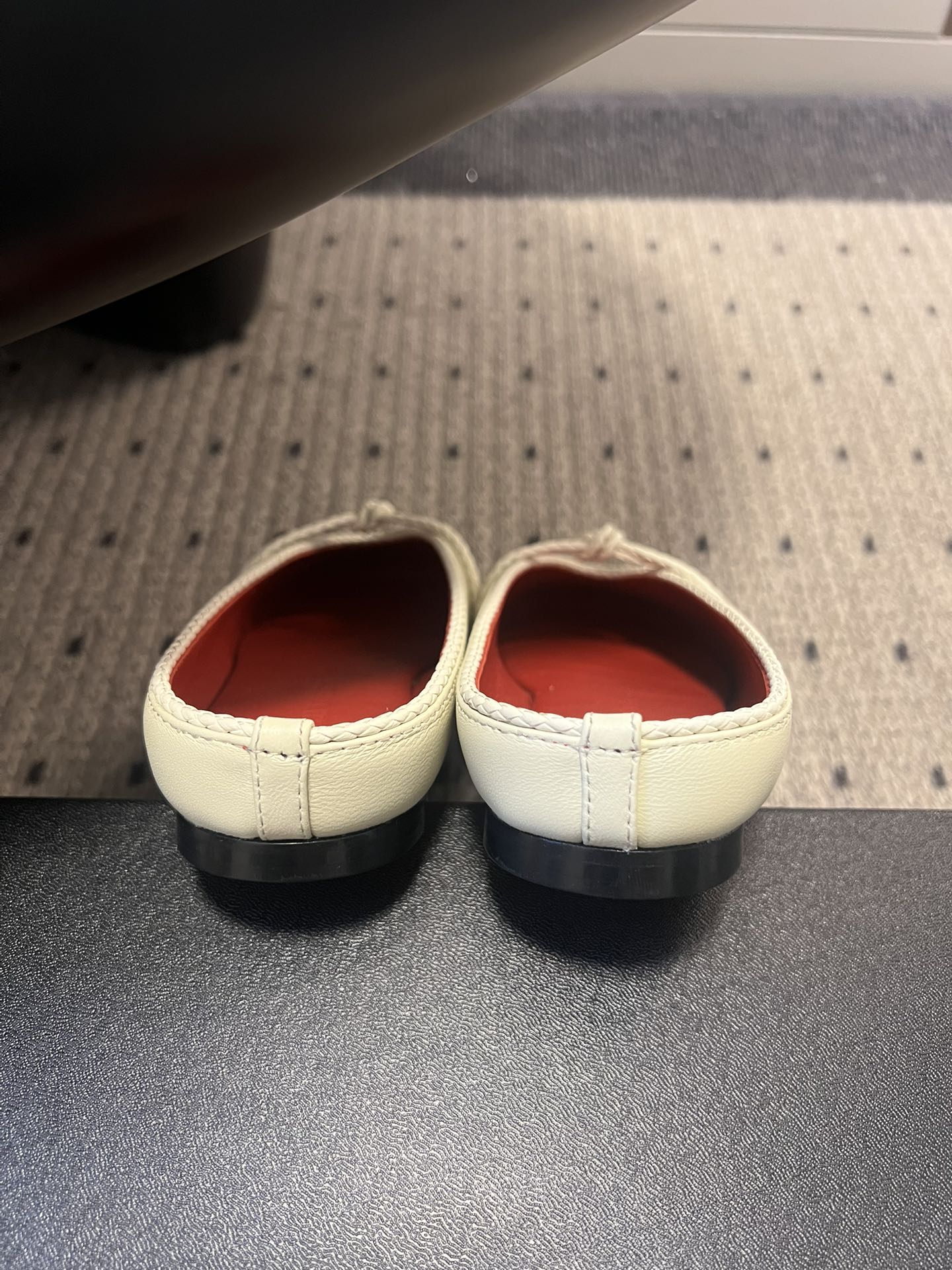 BOTTEGA VENETA 26S FLAT MULES IN CREAM WHITE LAMBSKIN