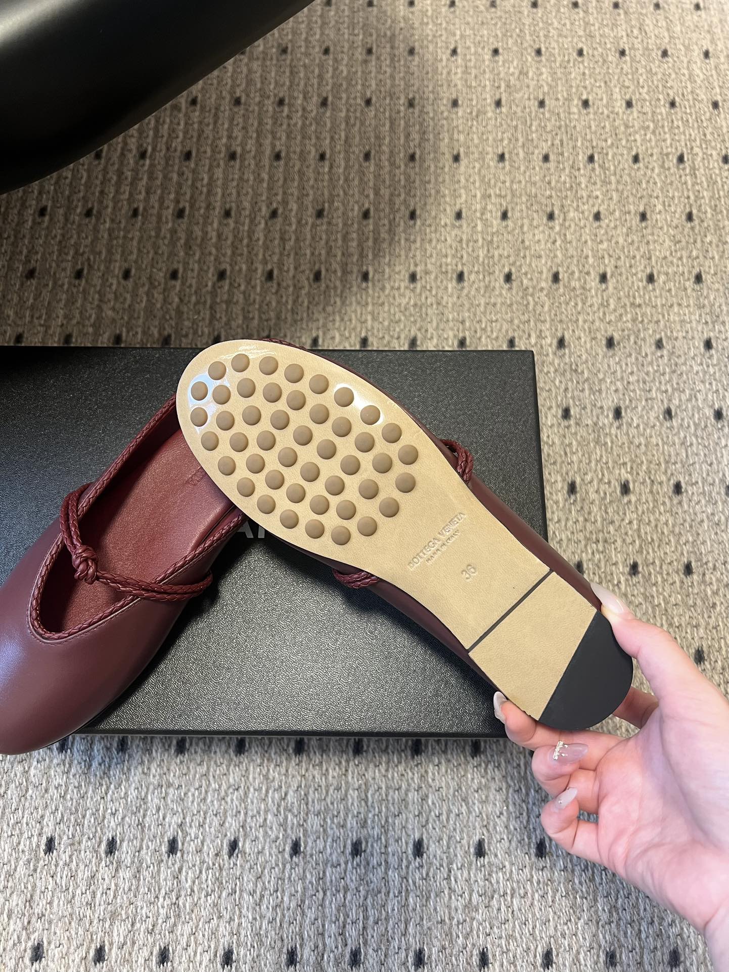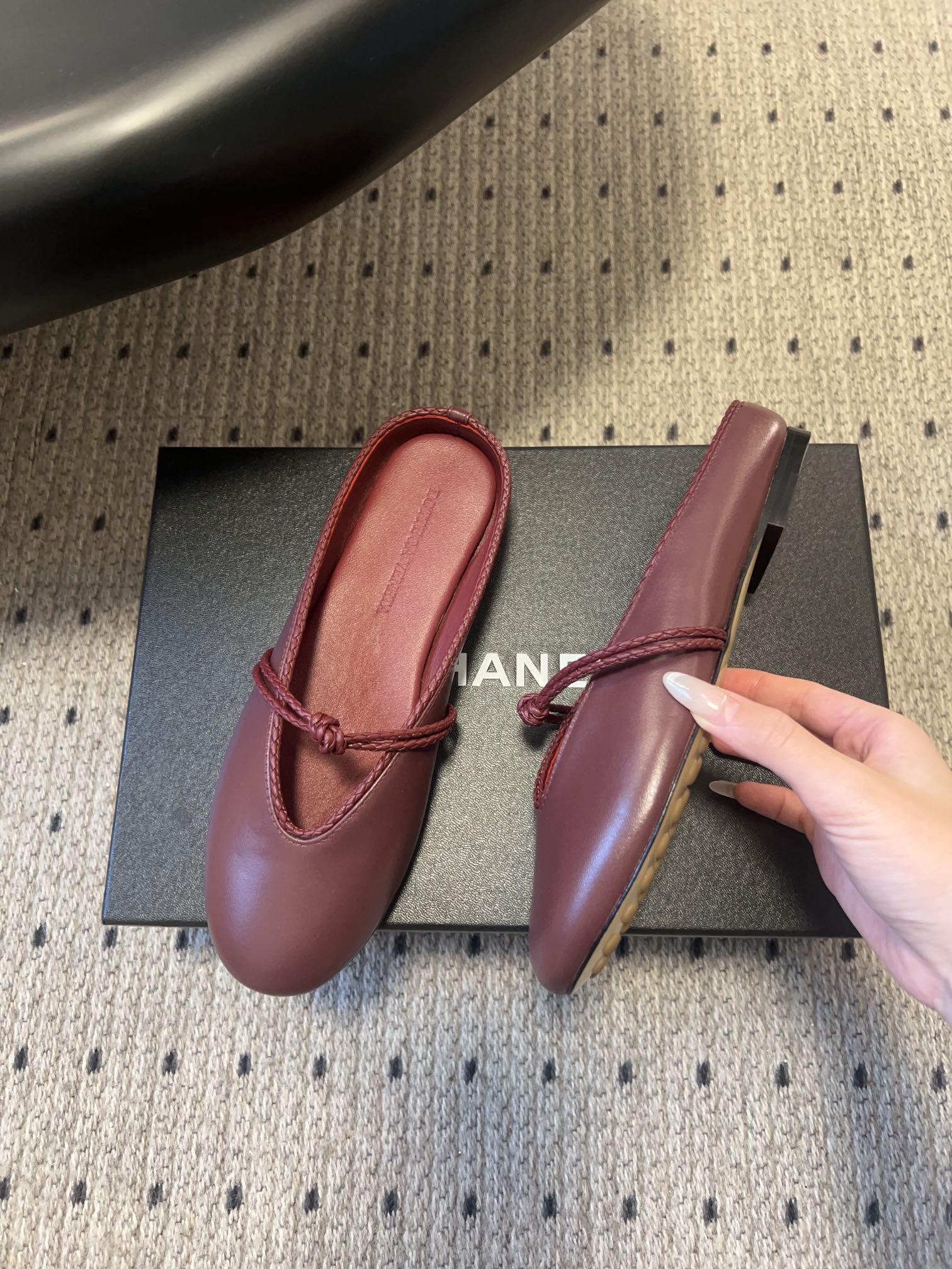 BOTTEGA VENETA 26S FLAT MULES IN DARK RED LAMBSKIN