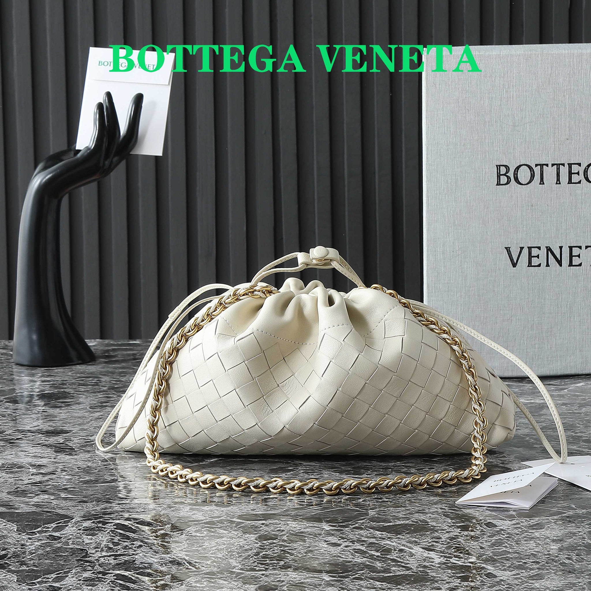 BOTTEGA VENETA 25S DUSTBAG NOTTE 33 IN IVORY CALFSKIN GOLD HARDWARE