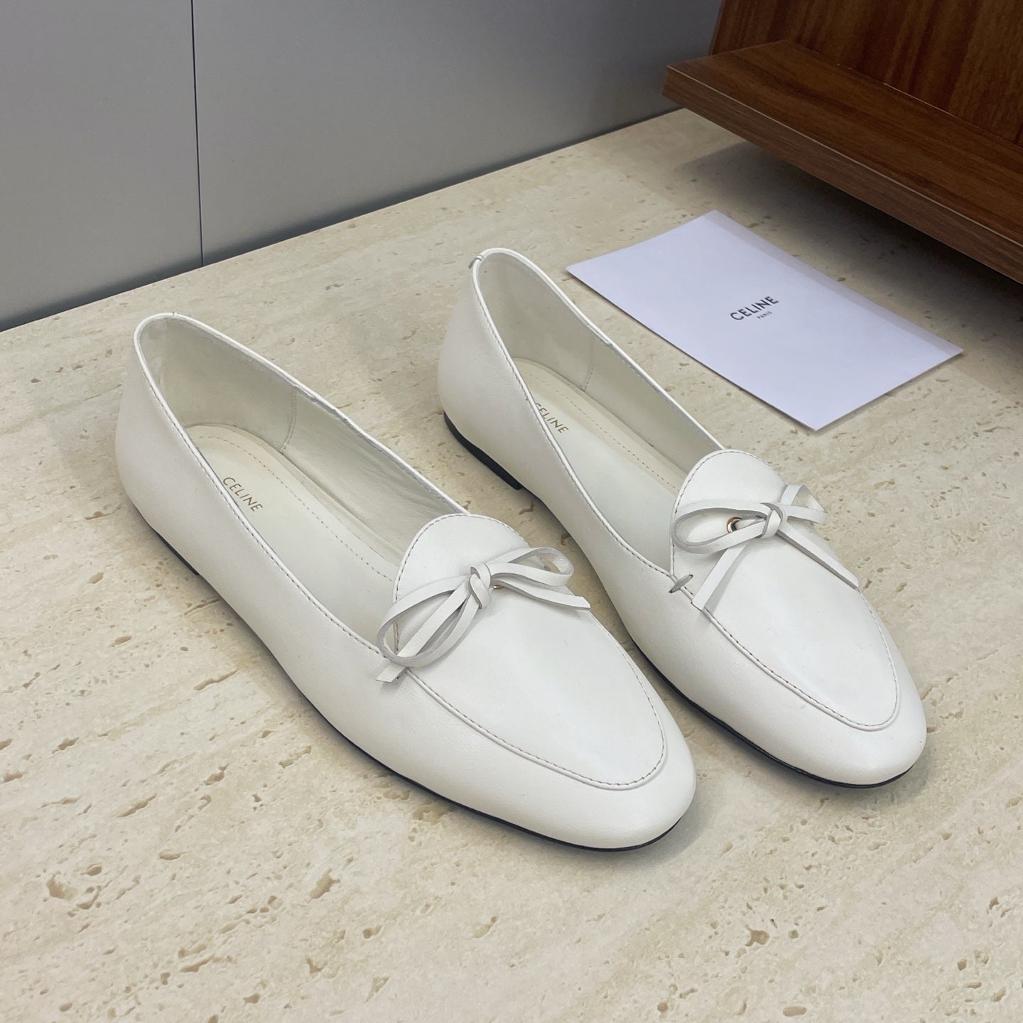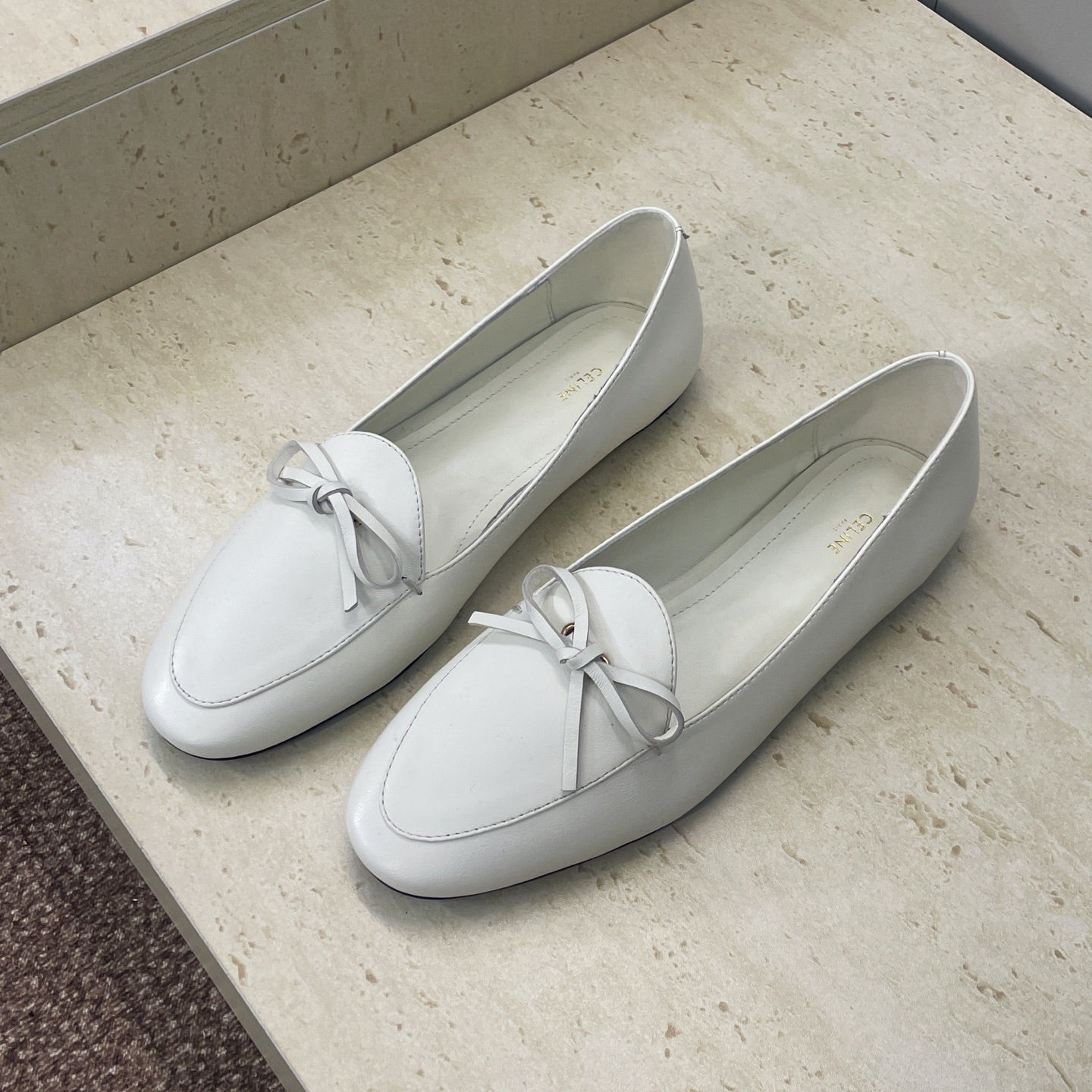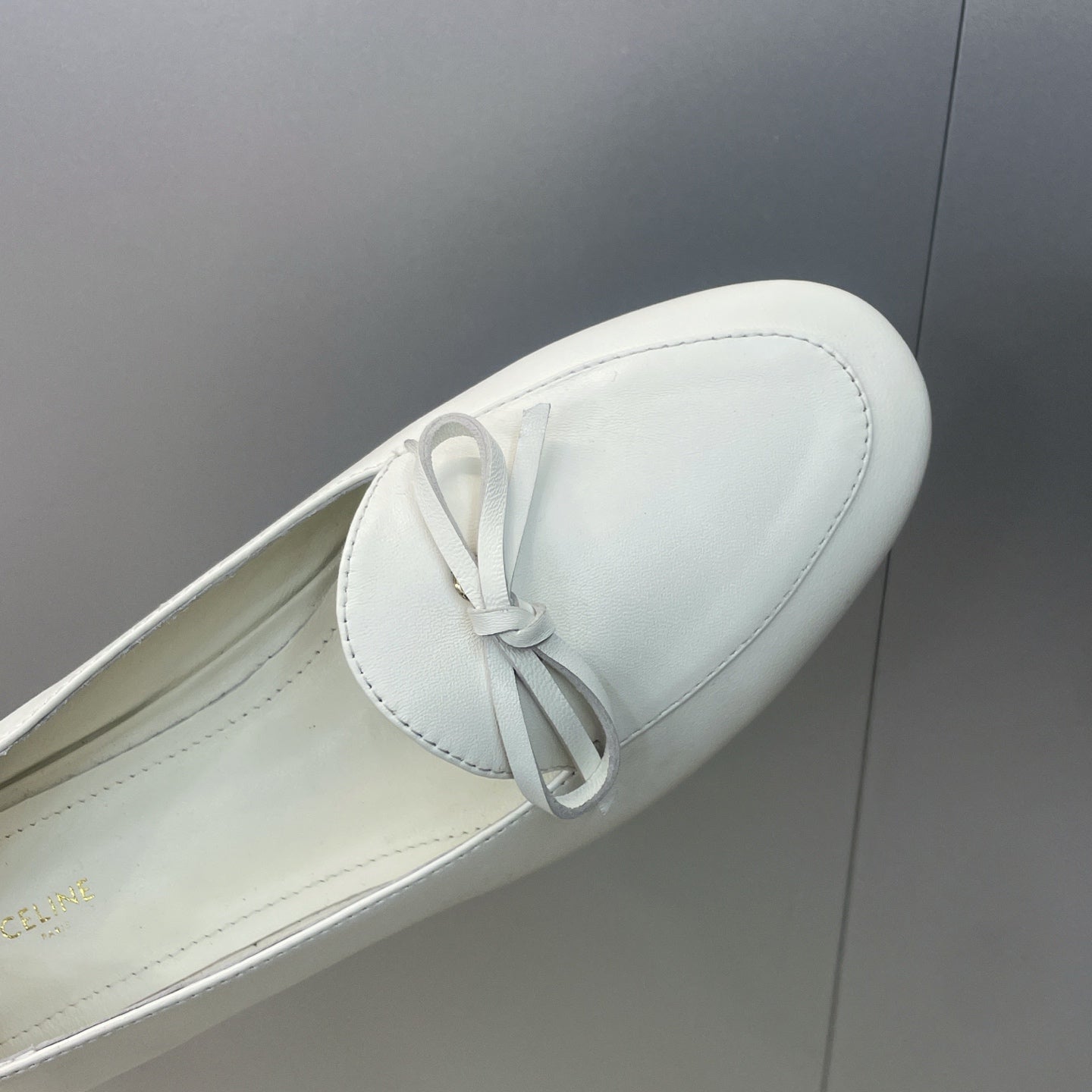 CELINE 26S BALLET FLATS IN WHITE LAMBSKIN WITH BOW