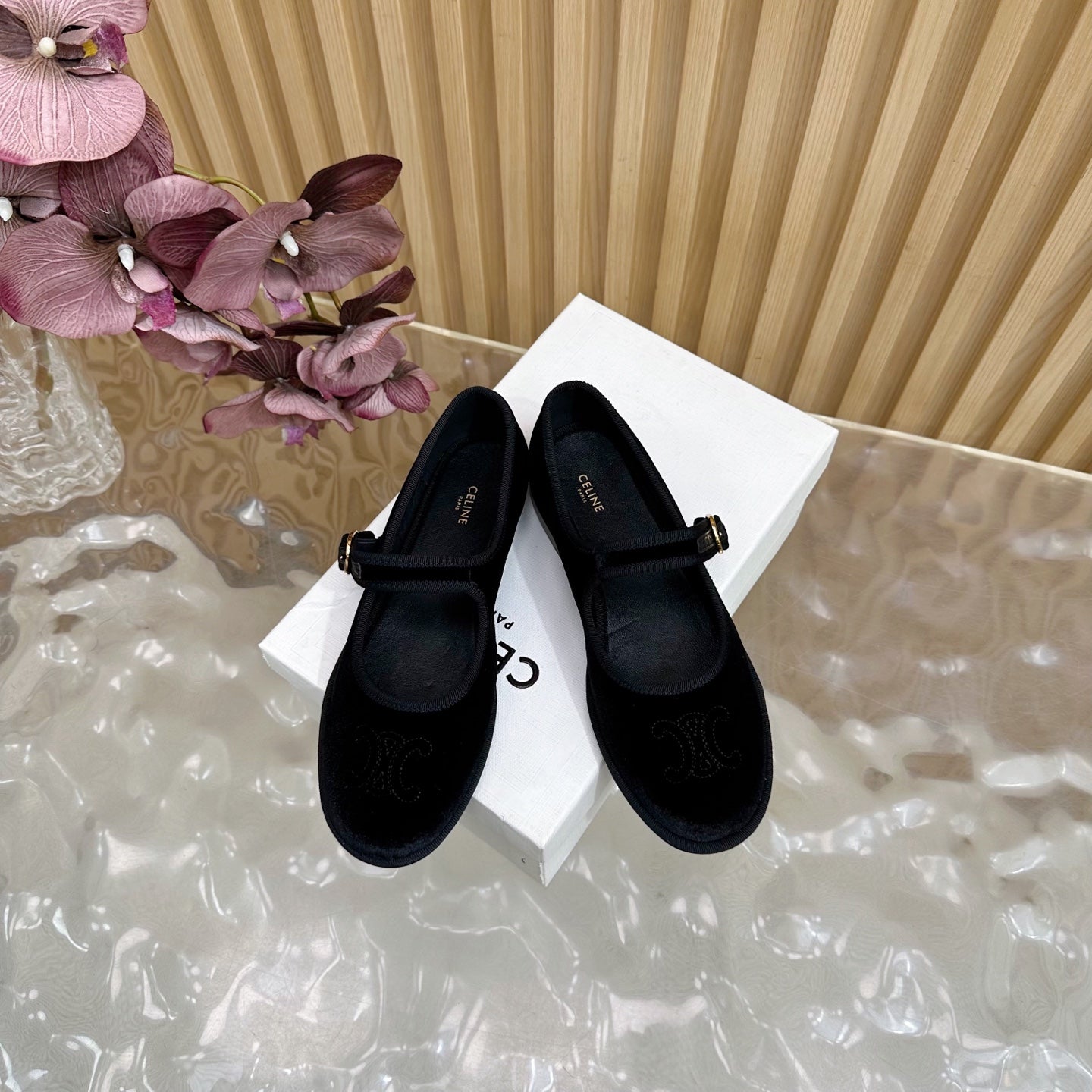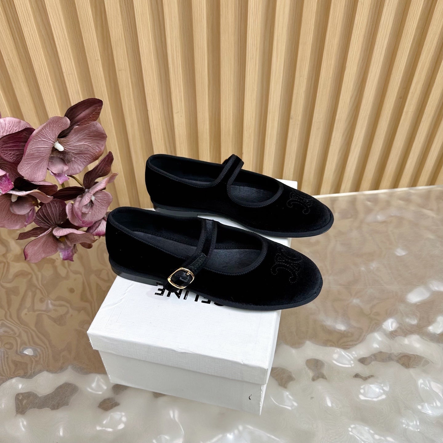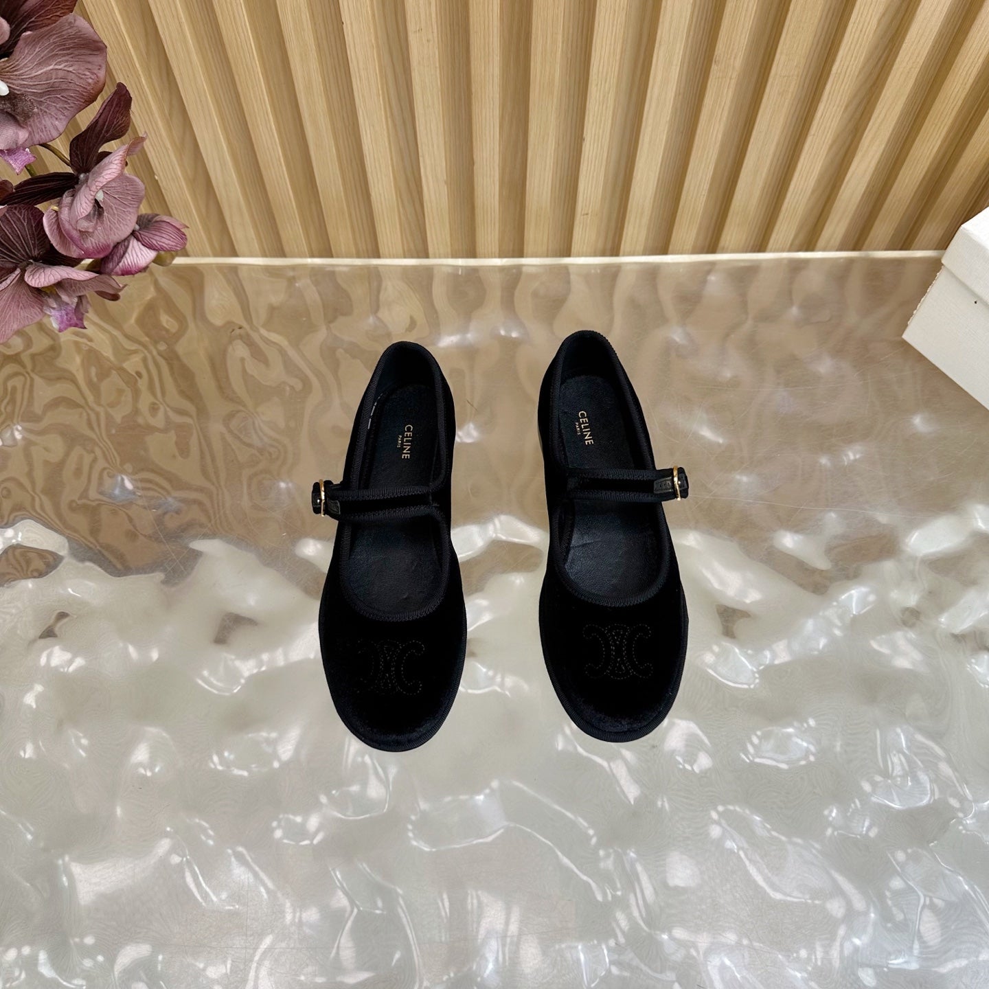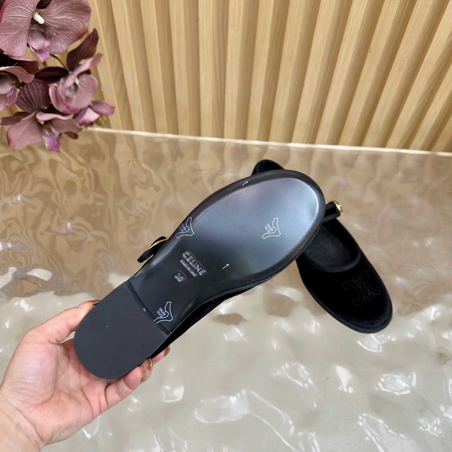 CELINE 26S MARY JANE FLATS IN BLACK VELVET