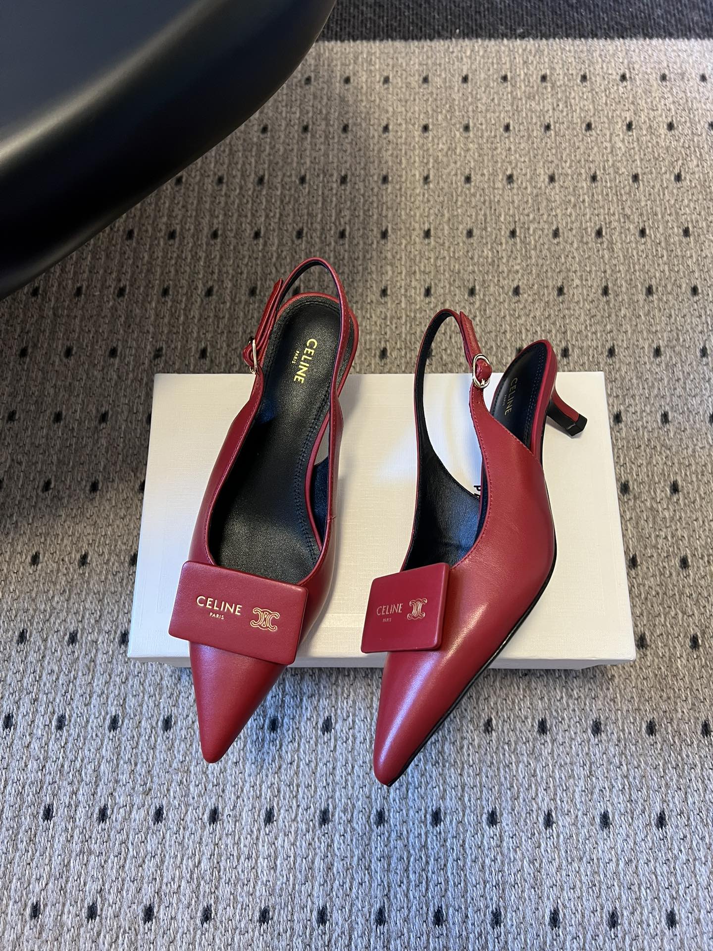 CELINE 26S HIGH-HEEL SLINGBACK 45 MM IN DARK RED CALFSKIN