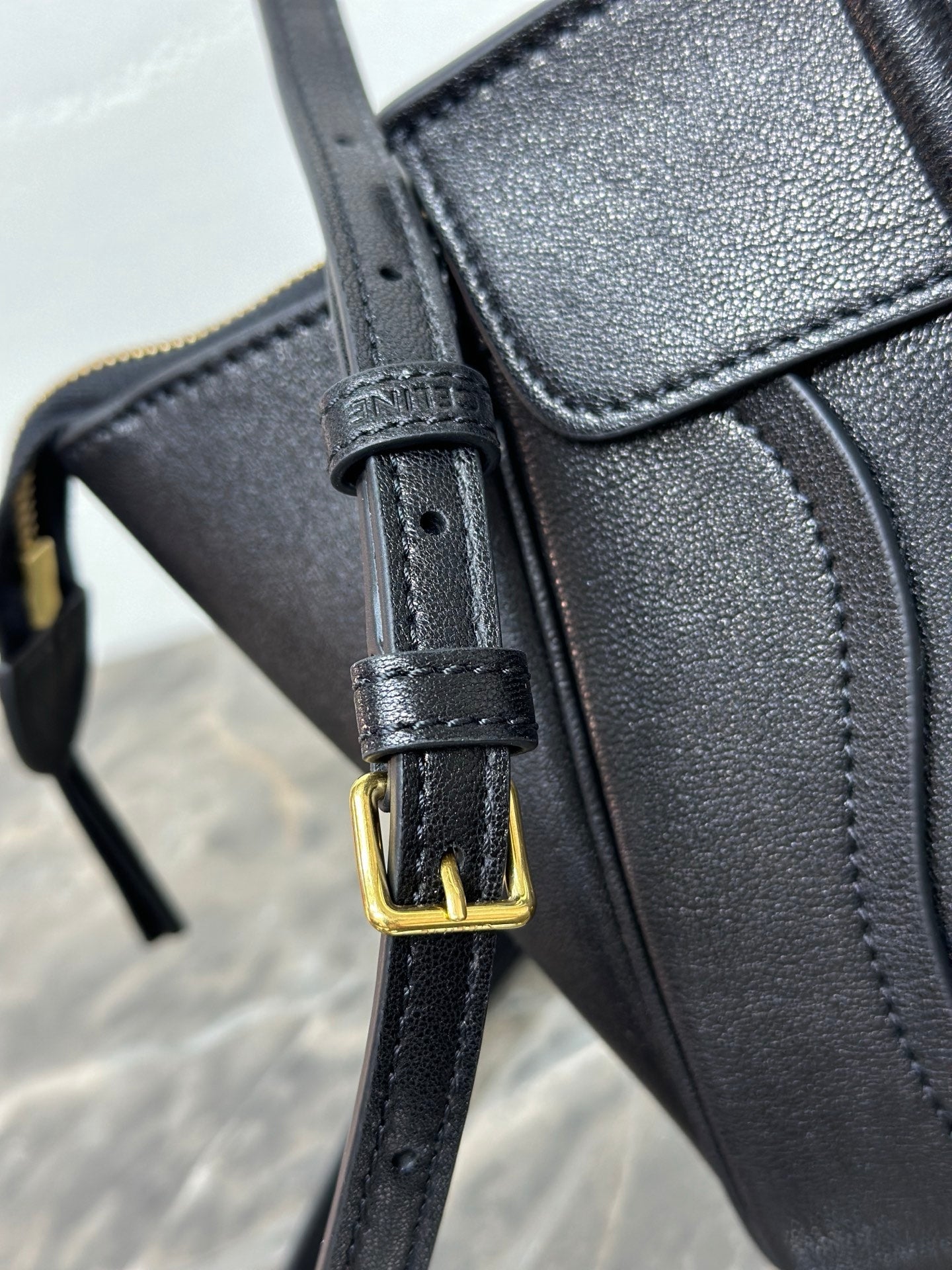 CELINE 25S NEW LUGGAGE 38MM IN BLACK SHINY LAMBSKIN GOLD HARDWARE