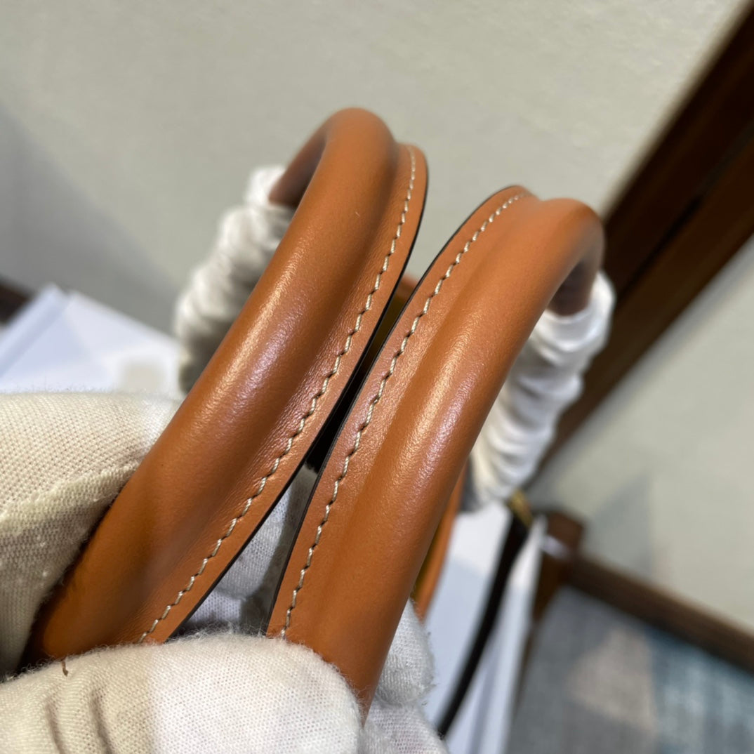 CELINE 25S HORIZONTAL CABAS 34MM IN BLACK TRIOMPHE CANVAS AND BROWN CALFSKIN