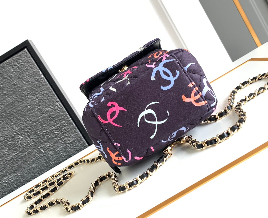CC CLASSIC MINI 18 BACKPACK COLORFUL WOOL COTTON MIXED FIBERS GOLD TONE METAL
