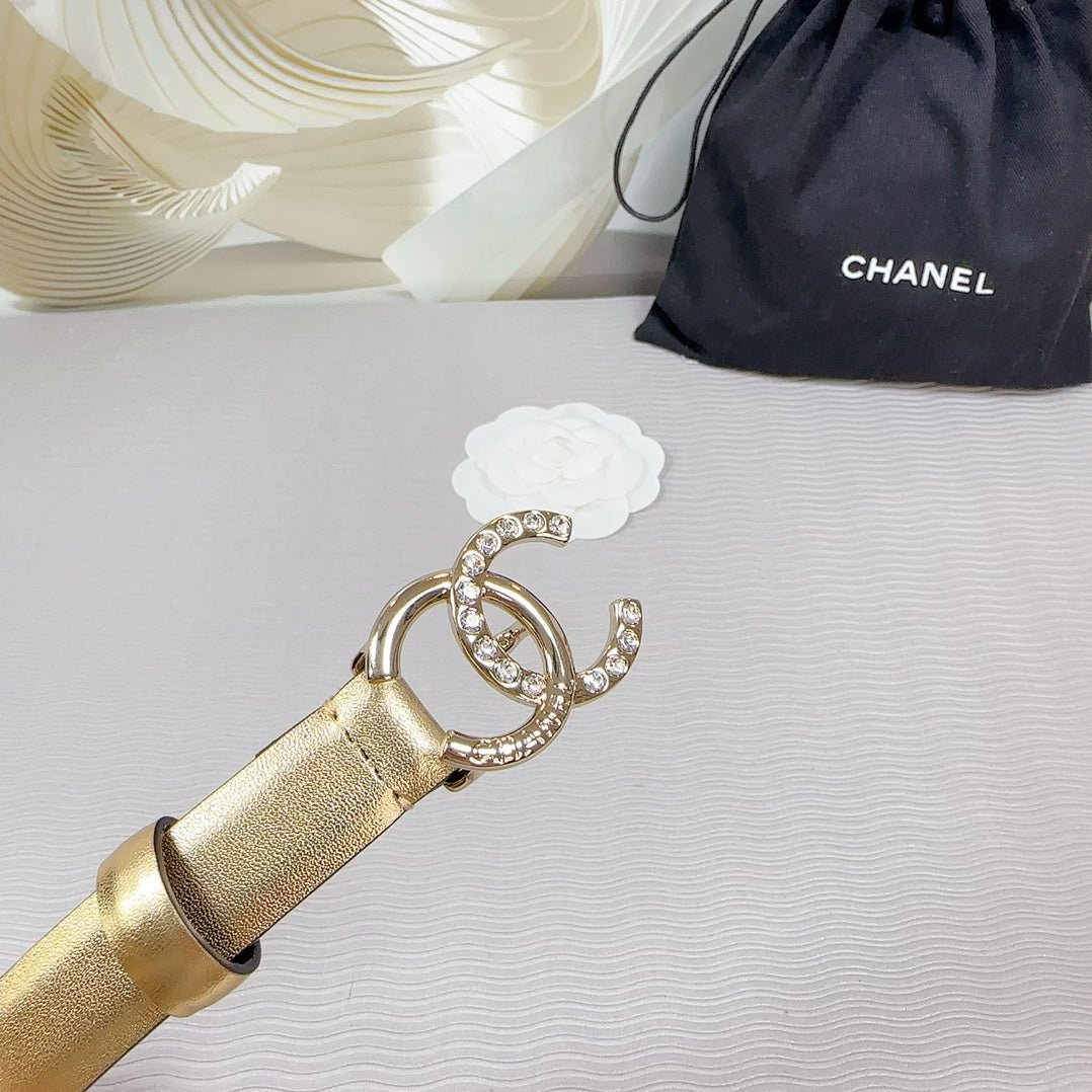 CC BELT 20 MM IN GOLD SMOOTH CALFSKIN GOLD HARDWARE ATTACH RHINSTONE