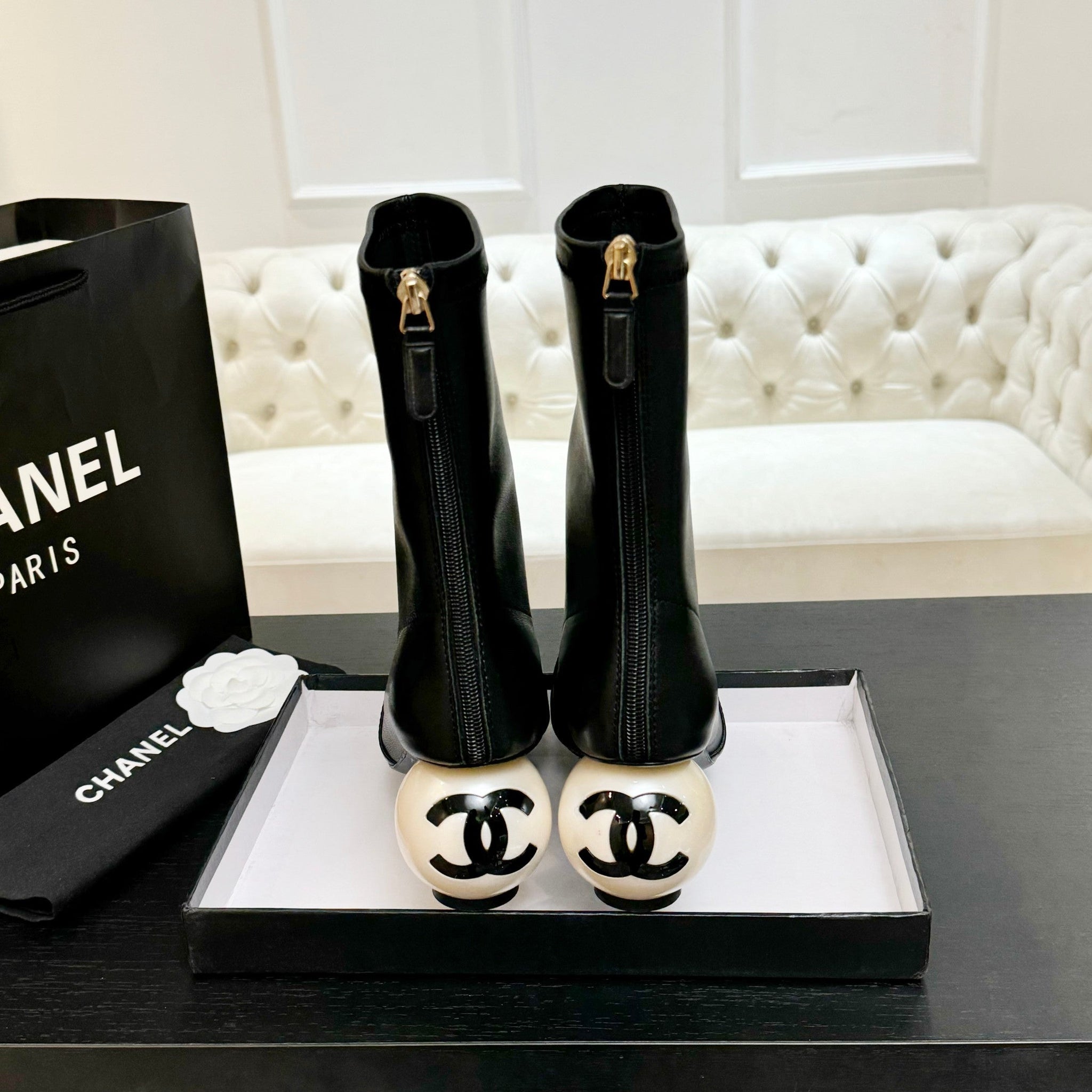 CC PEARL BOOTS 65MM IN BLACK CALFSKIN