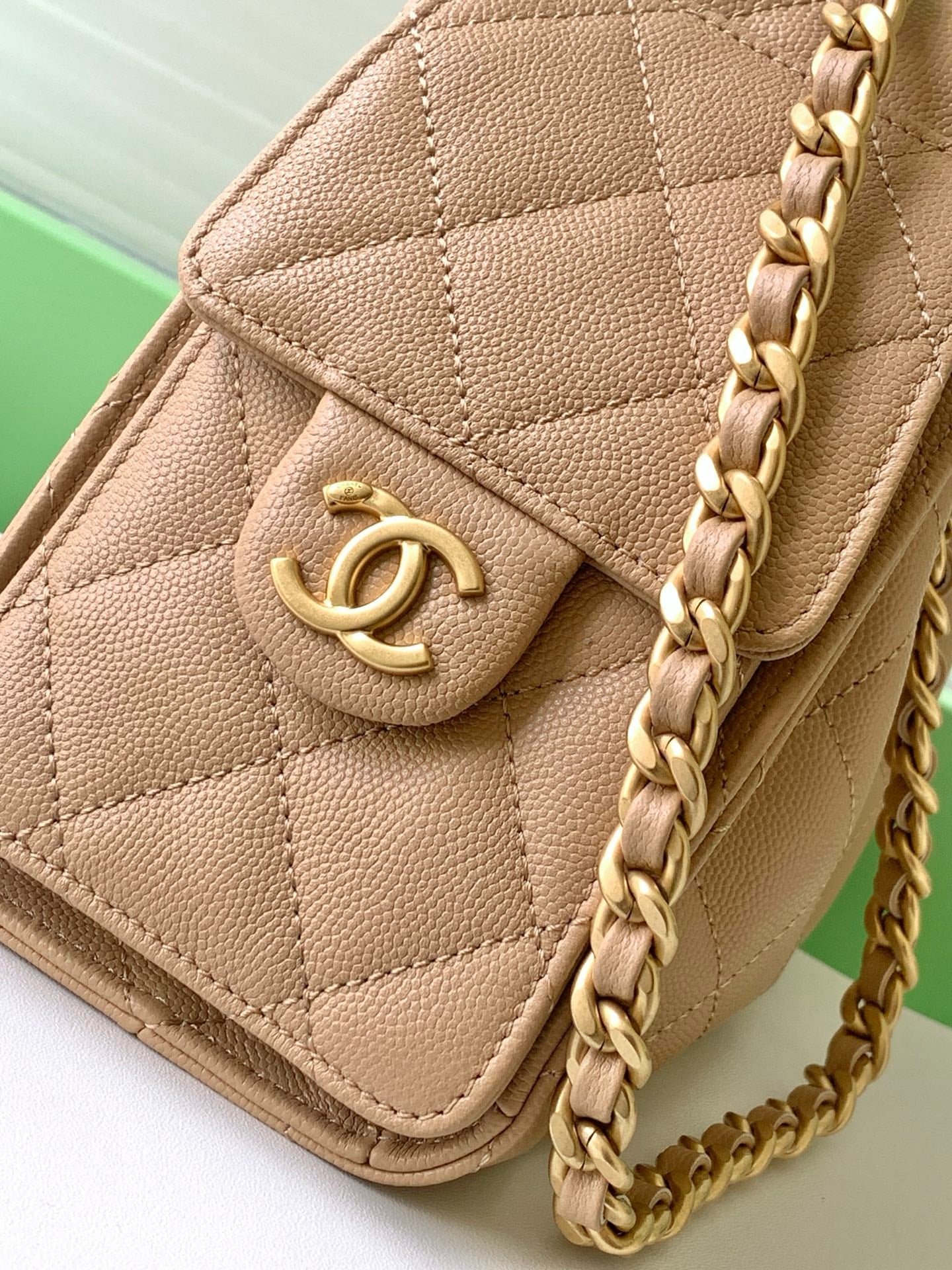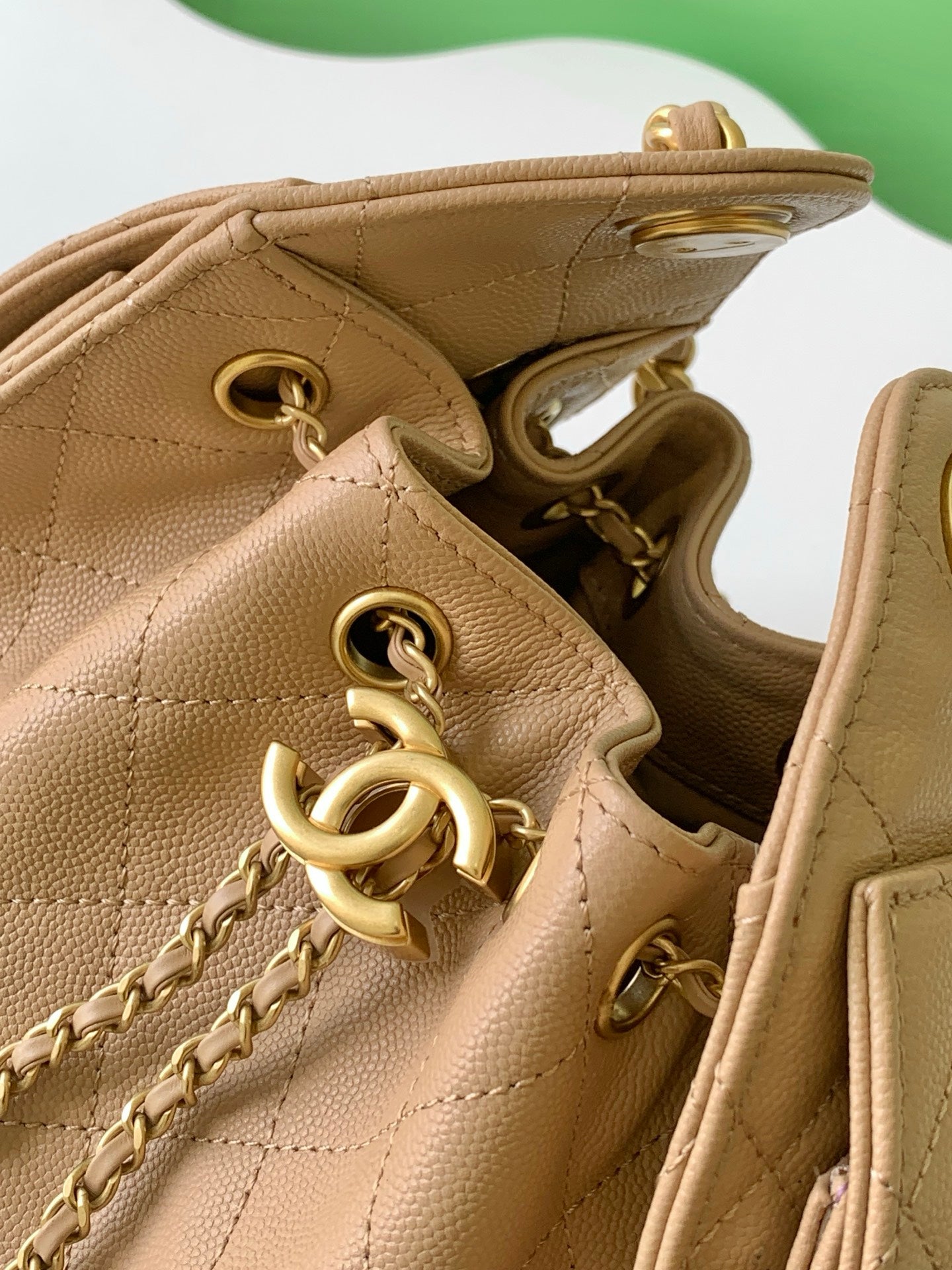 CHANEL 25S HOBO BAG 22 IN BEIGE BROWN CAVIAR LEATHER WITH GOLD HARDWARE