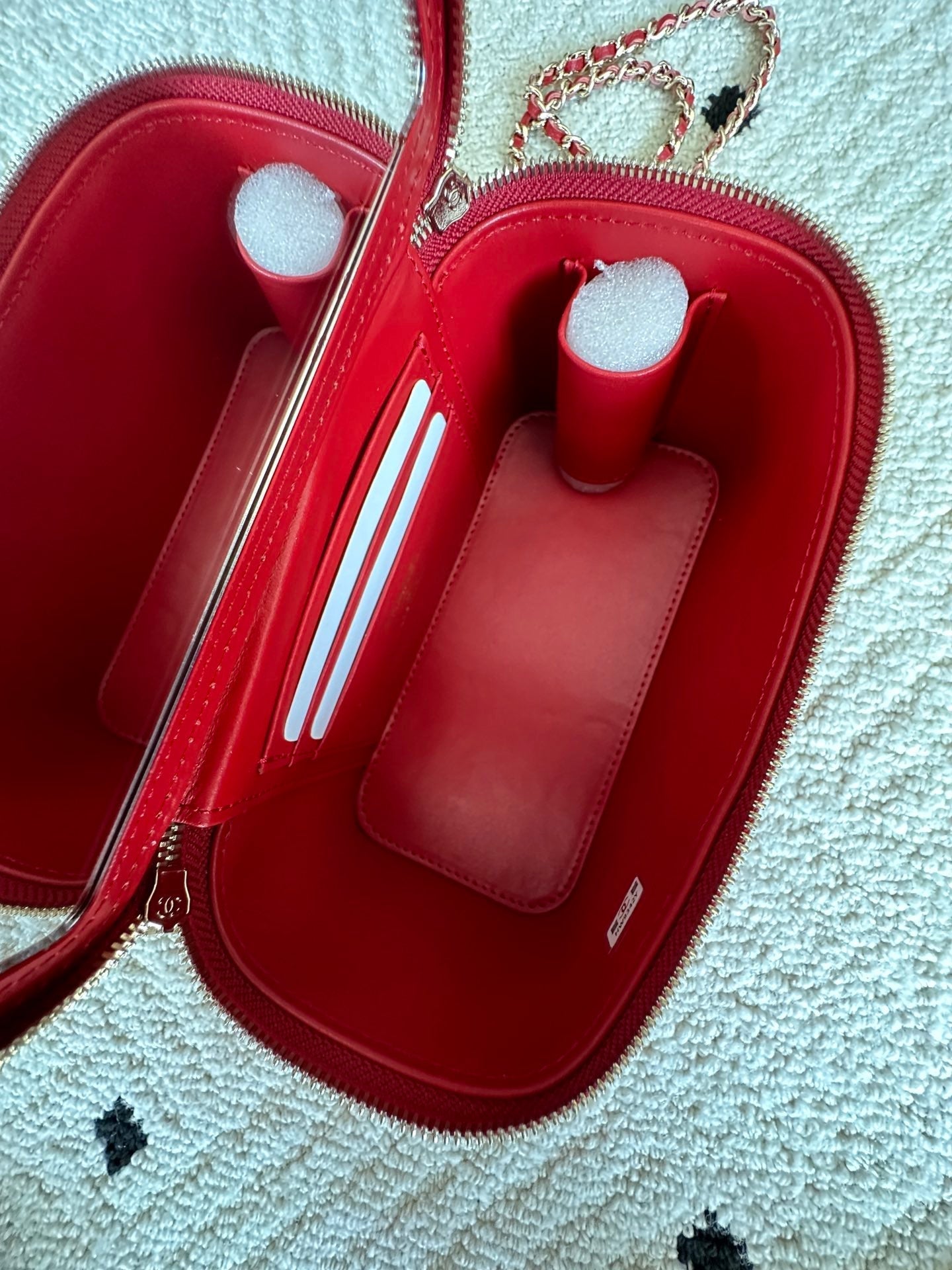 CHANEL 25S VANITY BAG 17 IN RED CAVIAR LEATHER WITH GOLD HARDWARE