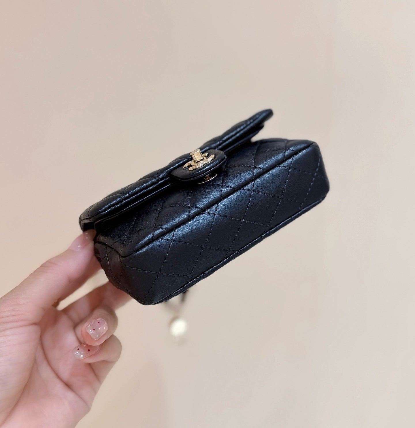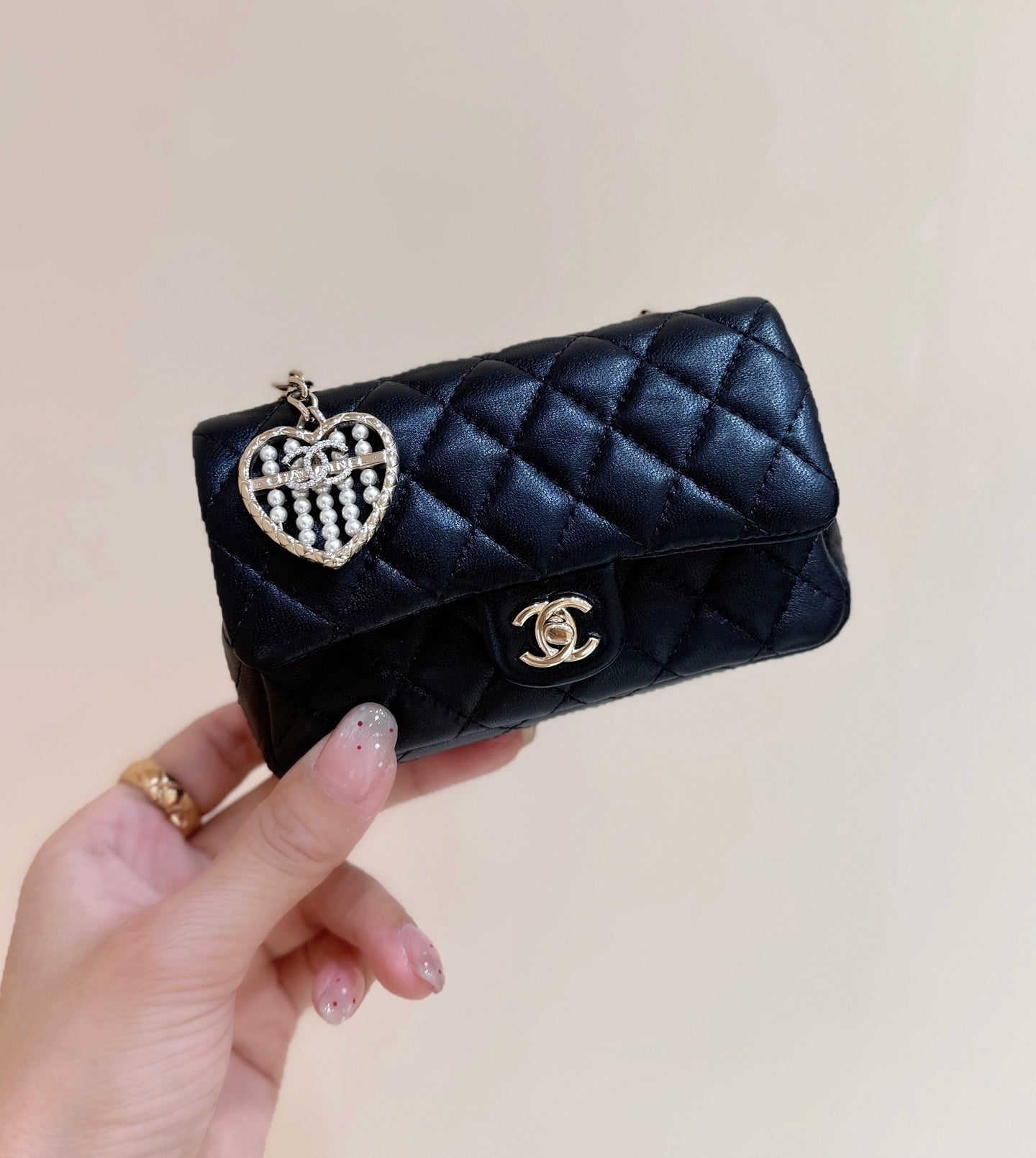 25S CHANEL MINI CF BAG 12 IN BLACK LAMBSKIN HEART MODEL