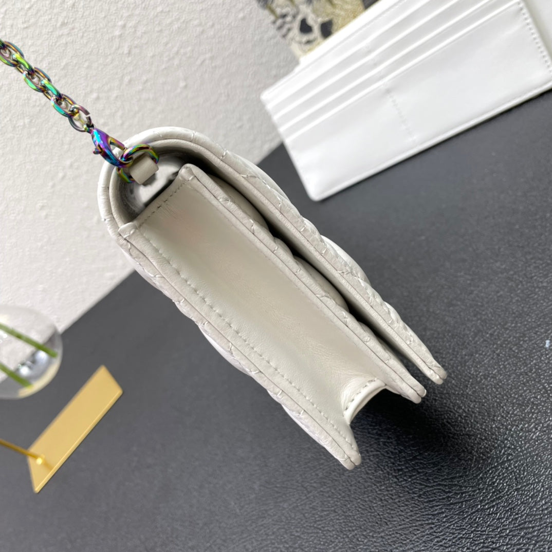 CARO SLIM POUCH 21 BAG IN WHITE CALFSKIN