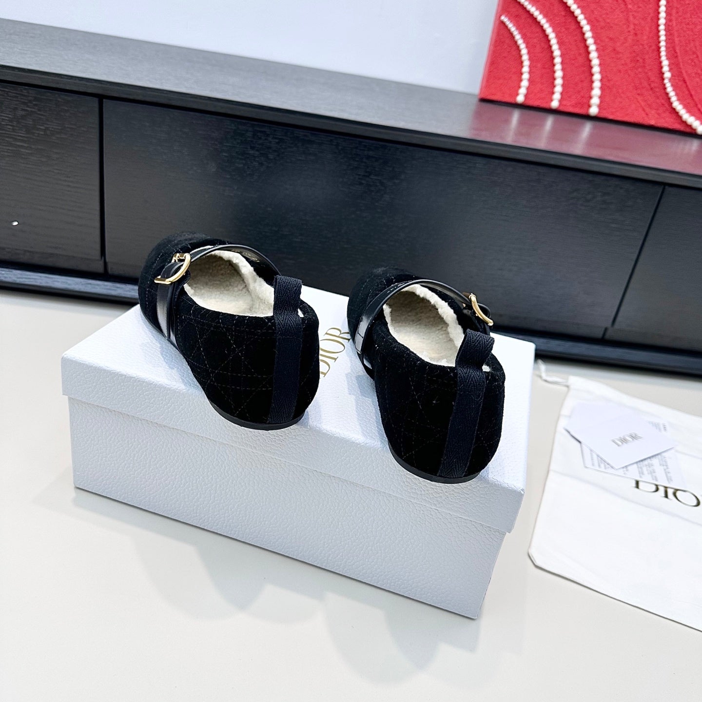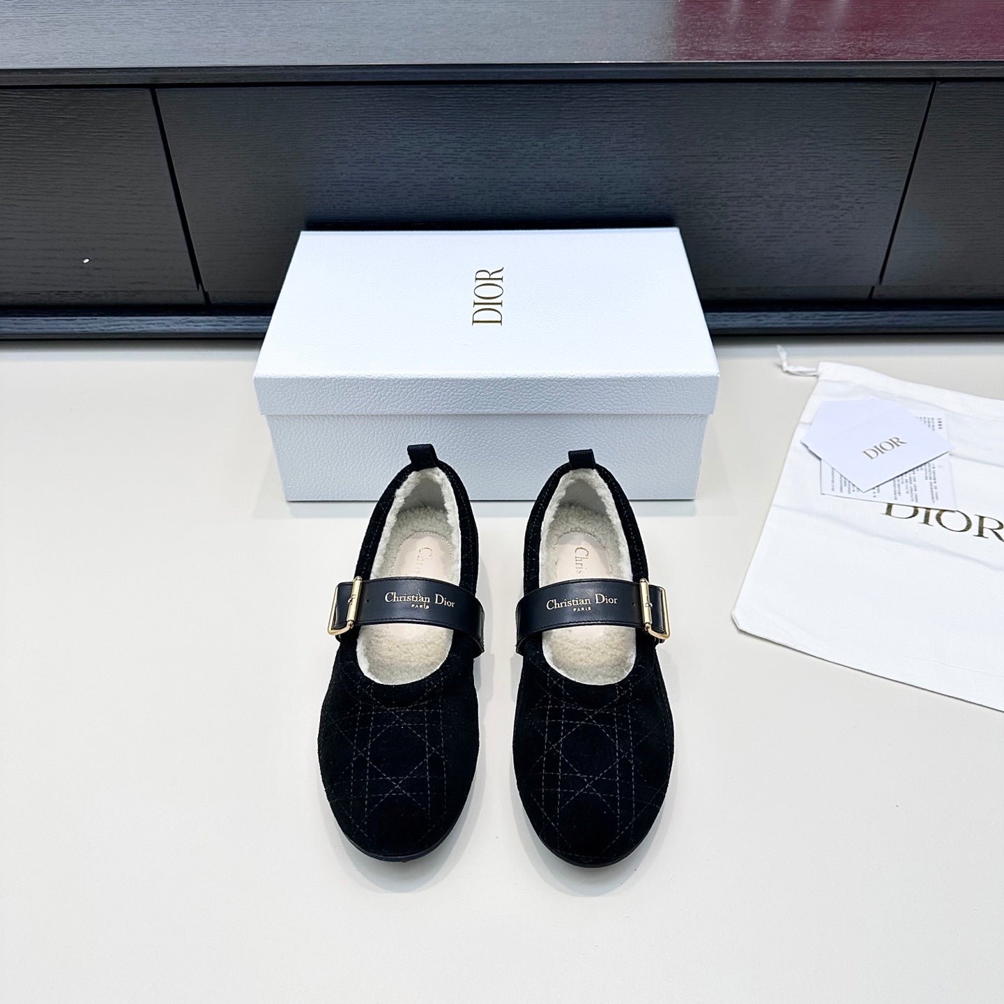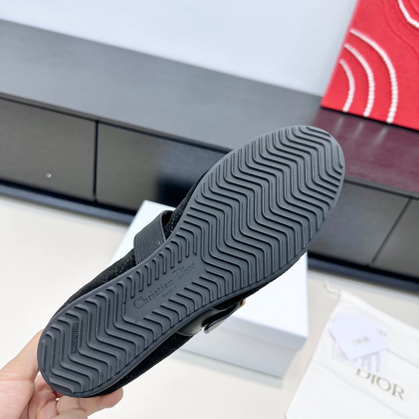 DIOR 26S FROST BALLET FLAT IN BLACK CANNAGE SUEDE AND CALFSKIN