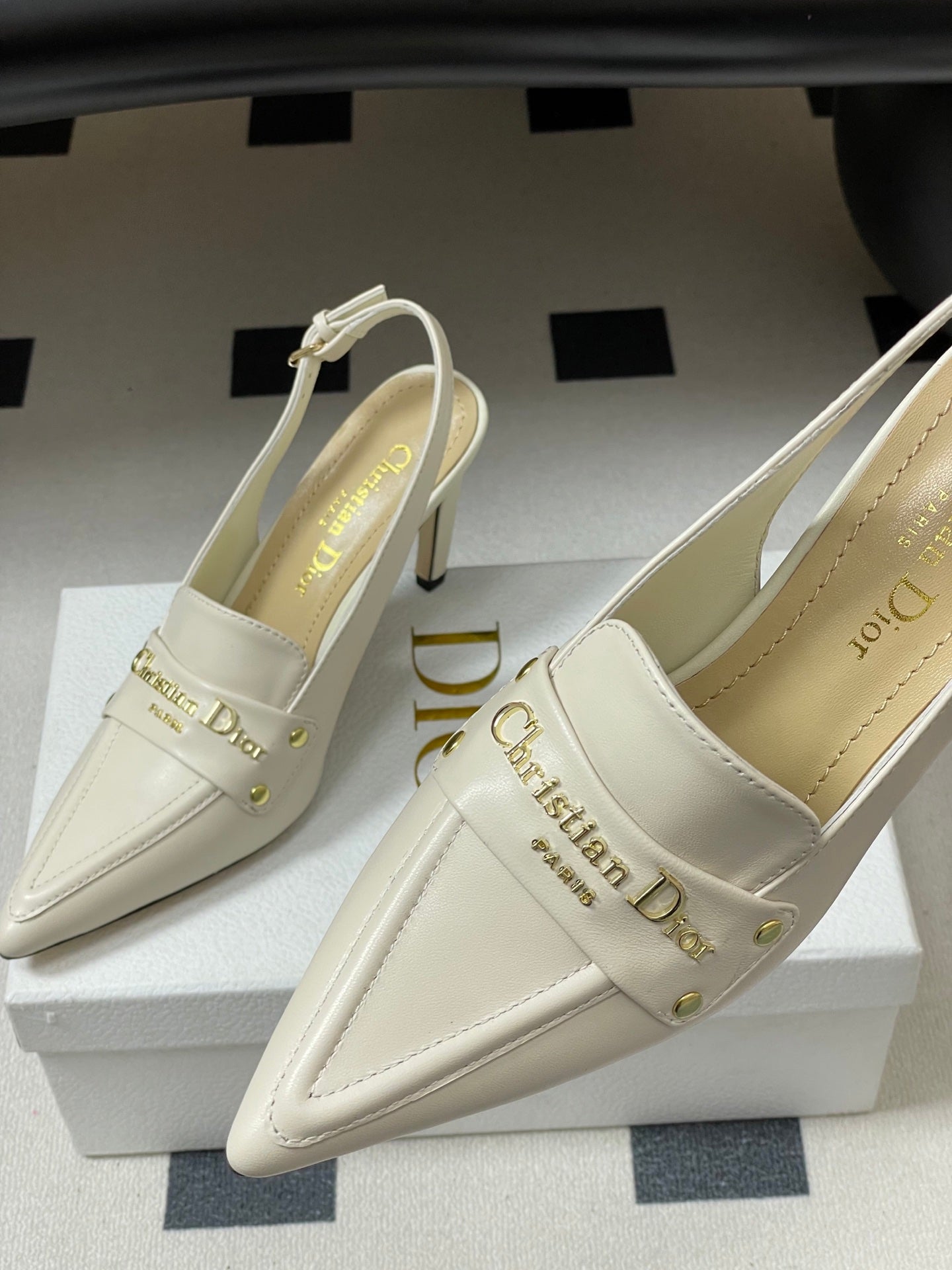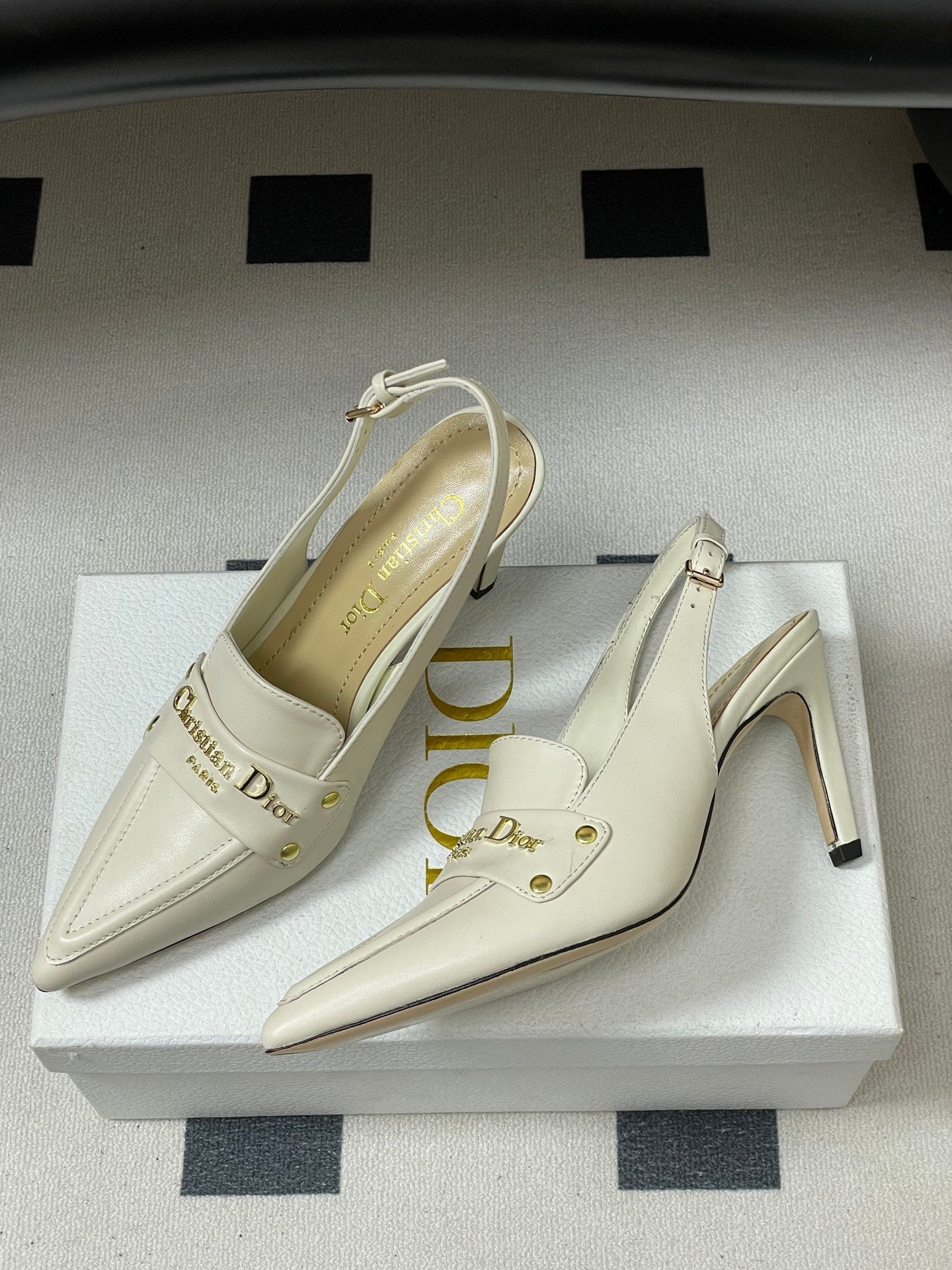 DIOR 25S BOY SLINGBACK HIGH HEELS 85 MM IN WHITE LAMBSKIN