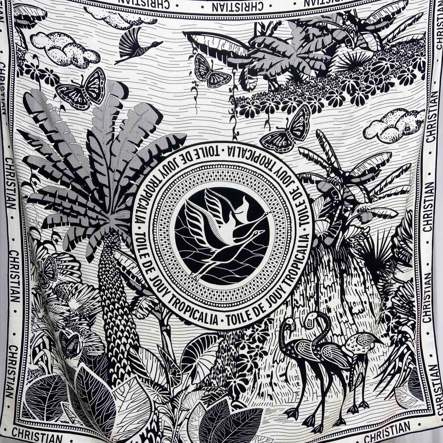 SQUARE SCARF 140 CM IN BLACK MIX WHITE MONOGRAM WOOL AND SILK 415111
