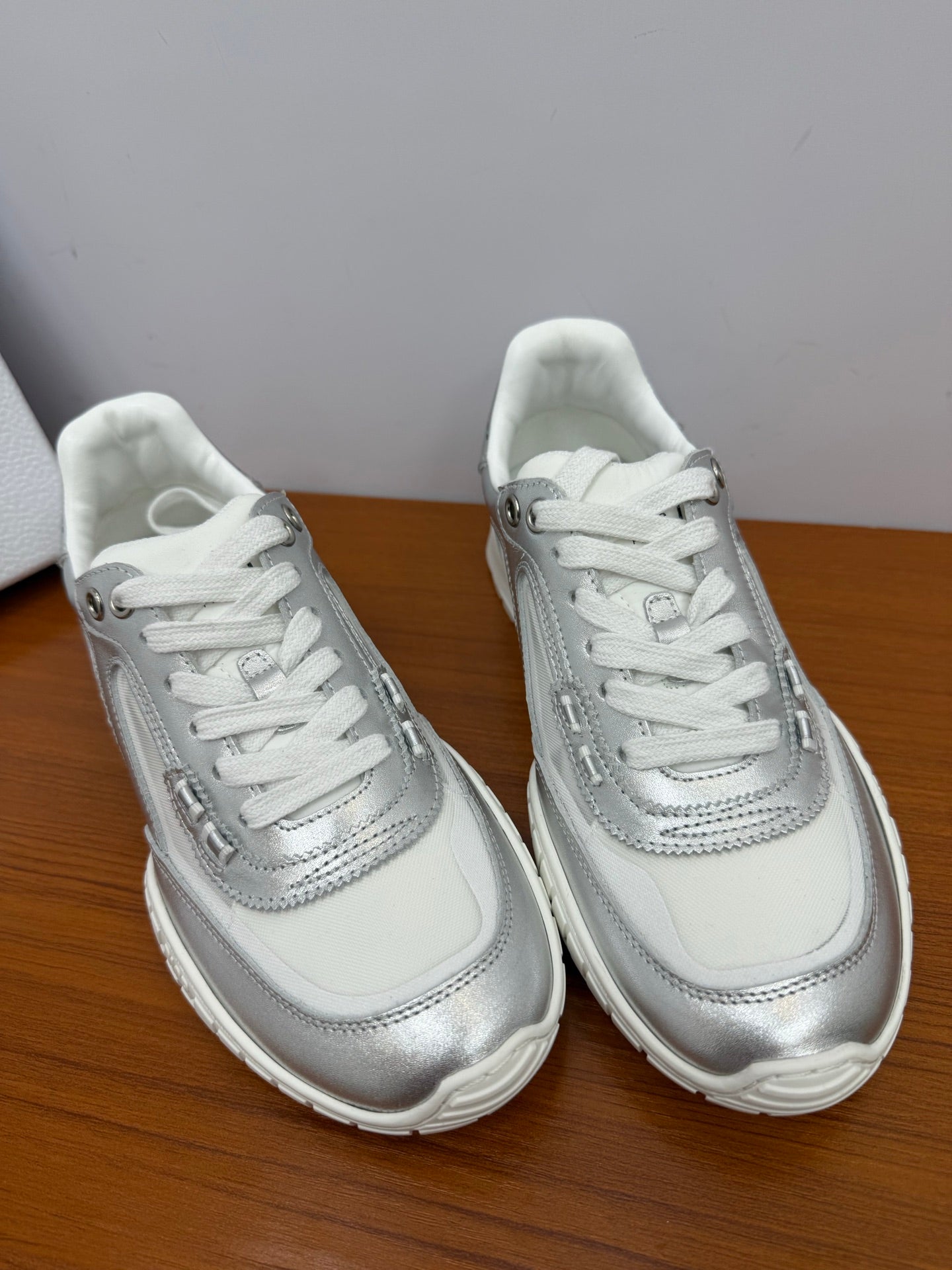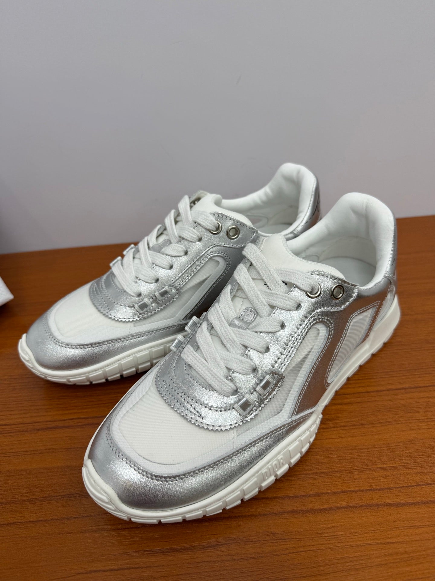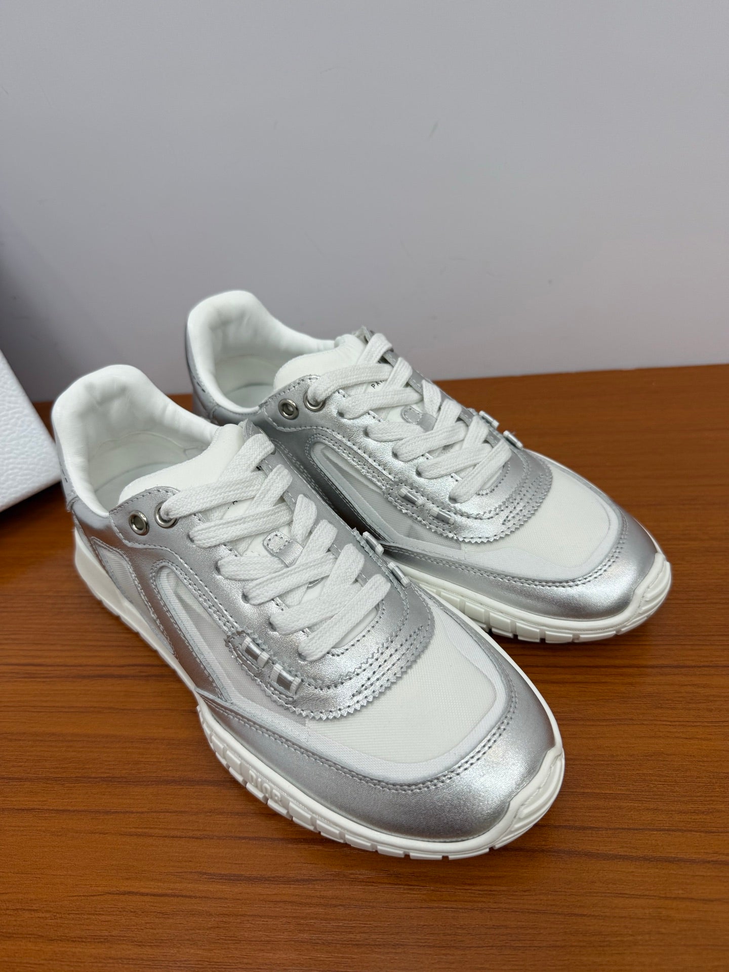DIOR 26S SNEAKERS IN WHITE AND SILVER CALFSKIN AND MESH