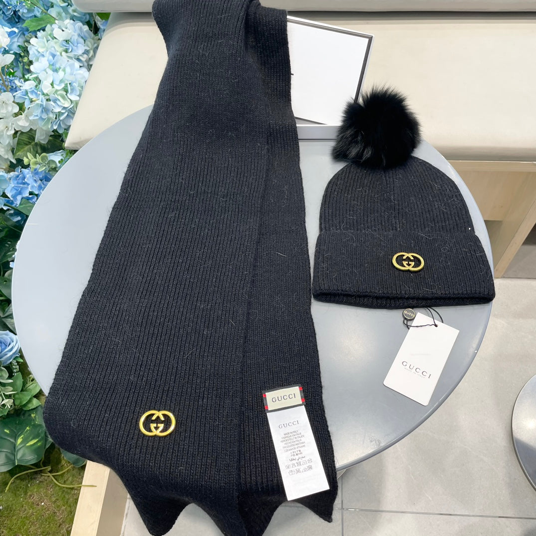 SET SCARF AND HAT IN BLACK CASHMERE 436221