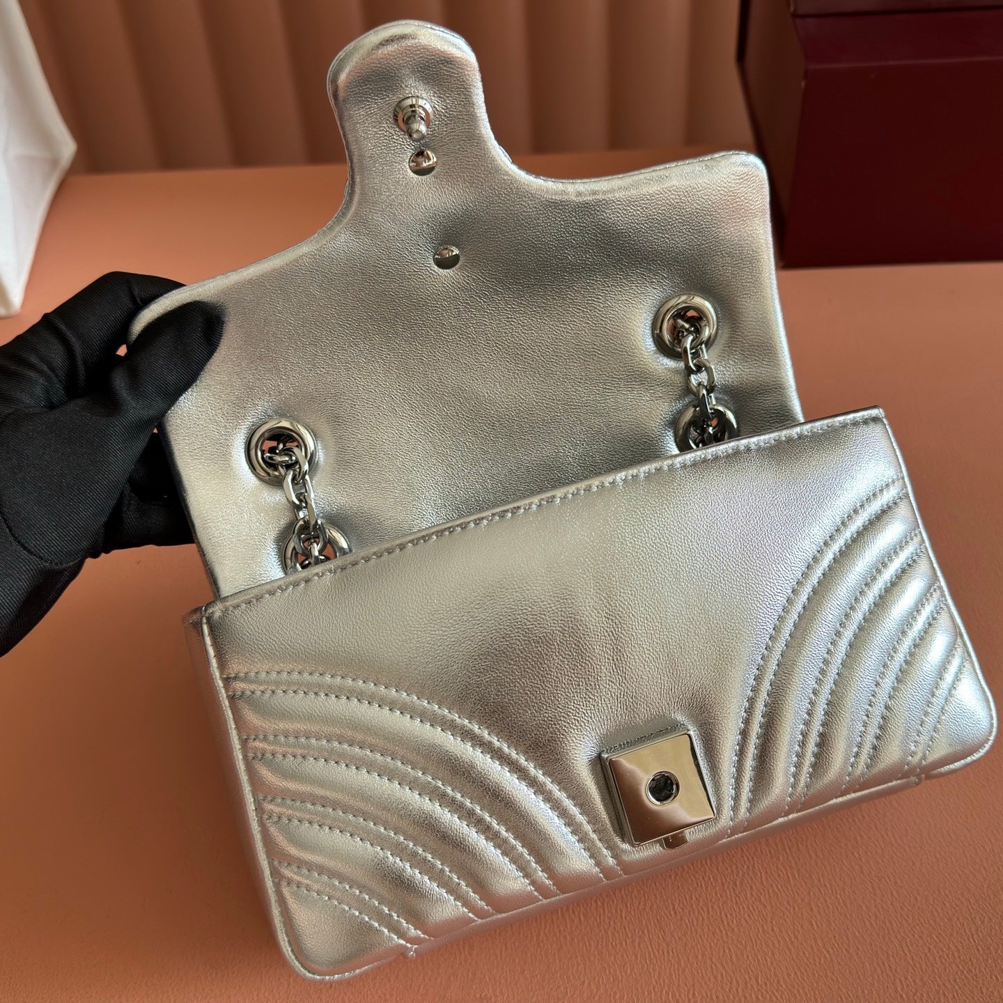 GUCCI 26S GG MARMONT BAG 22 IN SILVER LAMBSKIN