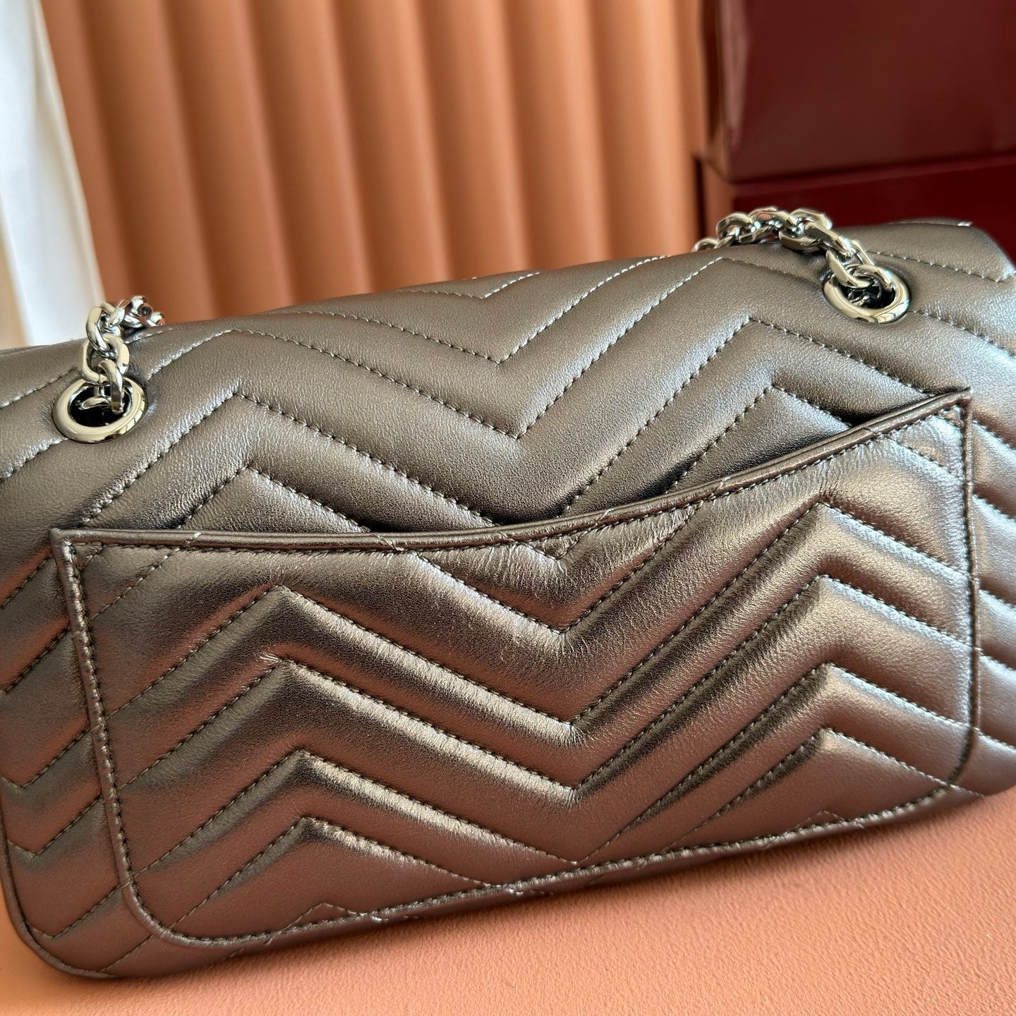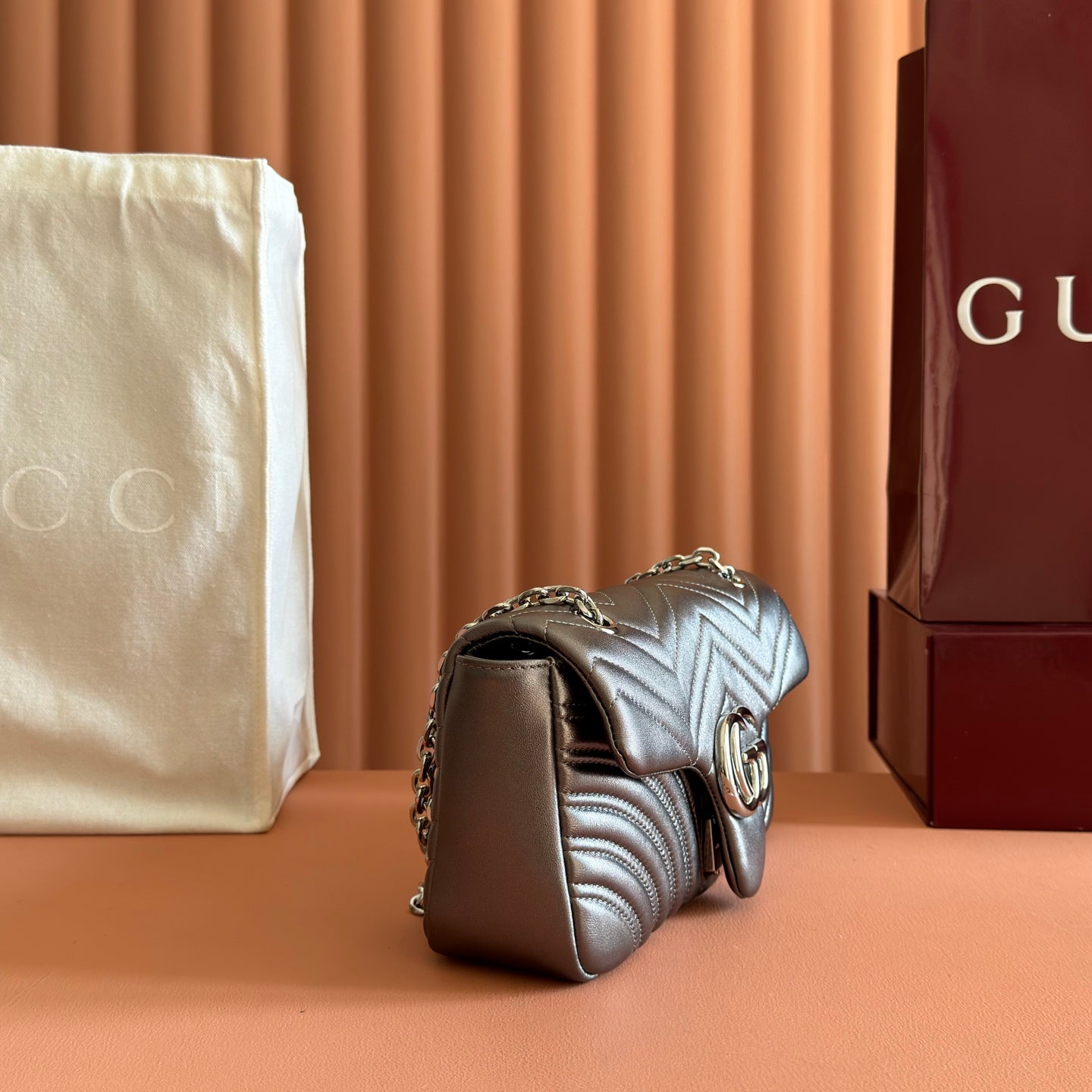 GUCCI 26S GG MARMONT BAG 26 IN WARM GRAY BROWN LAMBSKIN