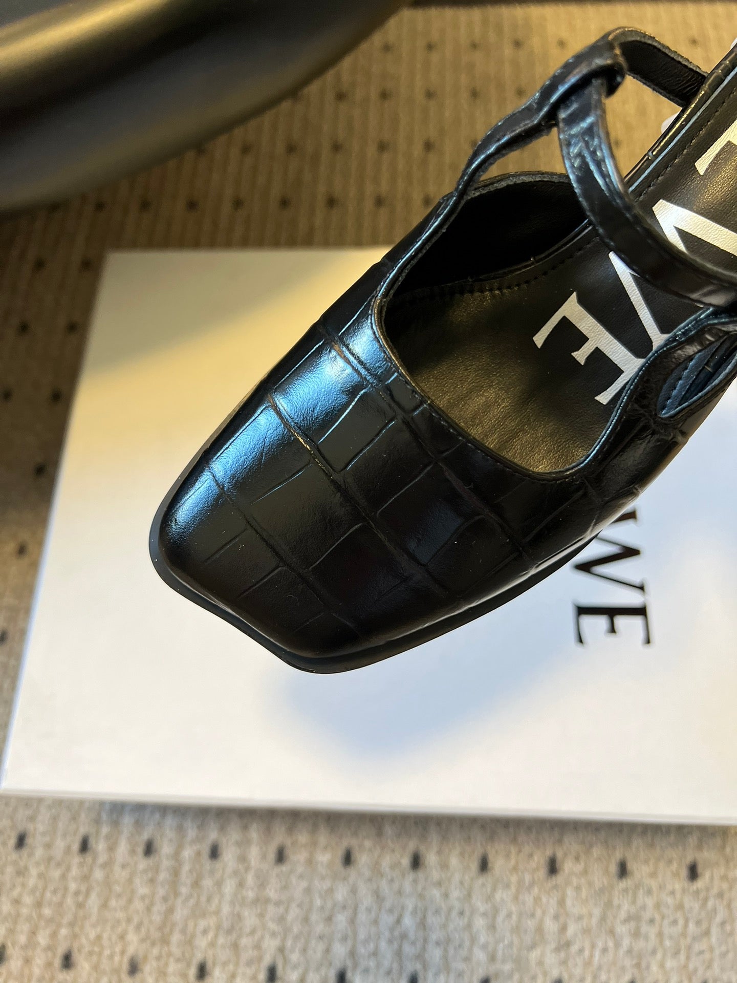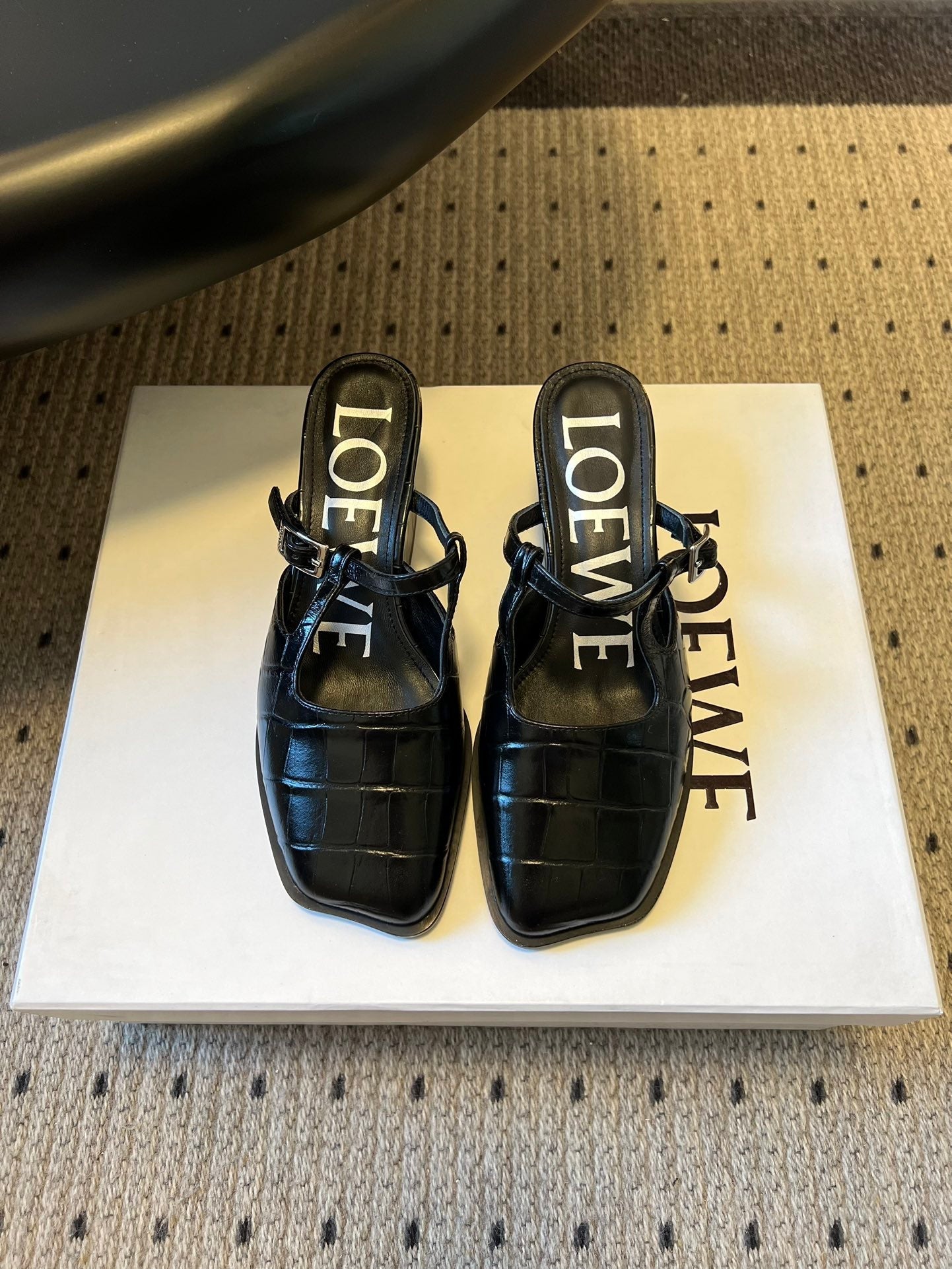 LOEWE 26S ONDA MULE 45MM IN BLACK EMBOSSED CROCODILE CALFSKIN