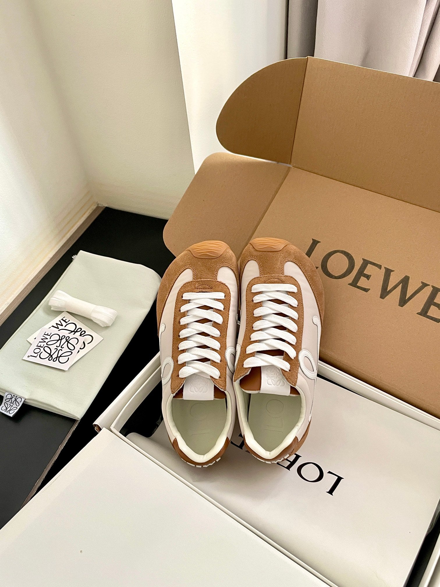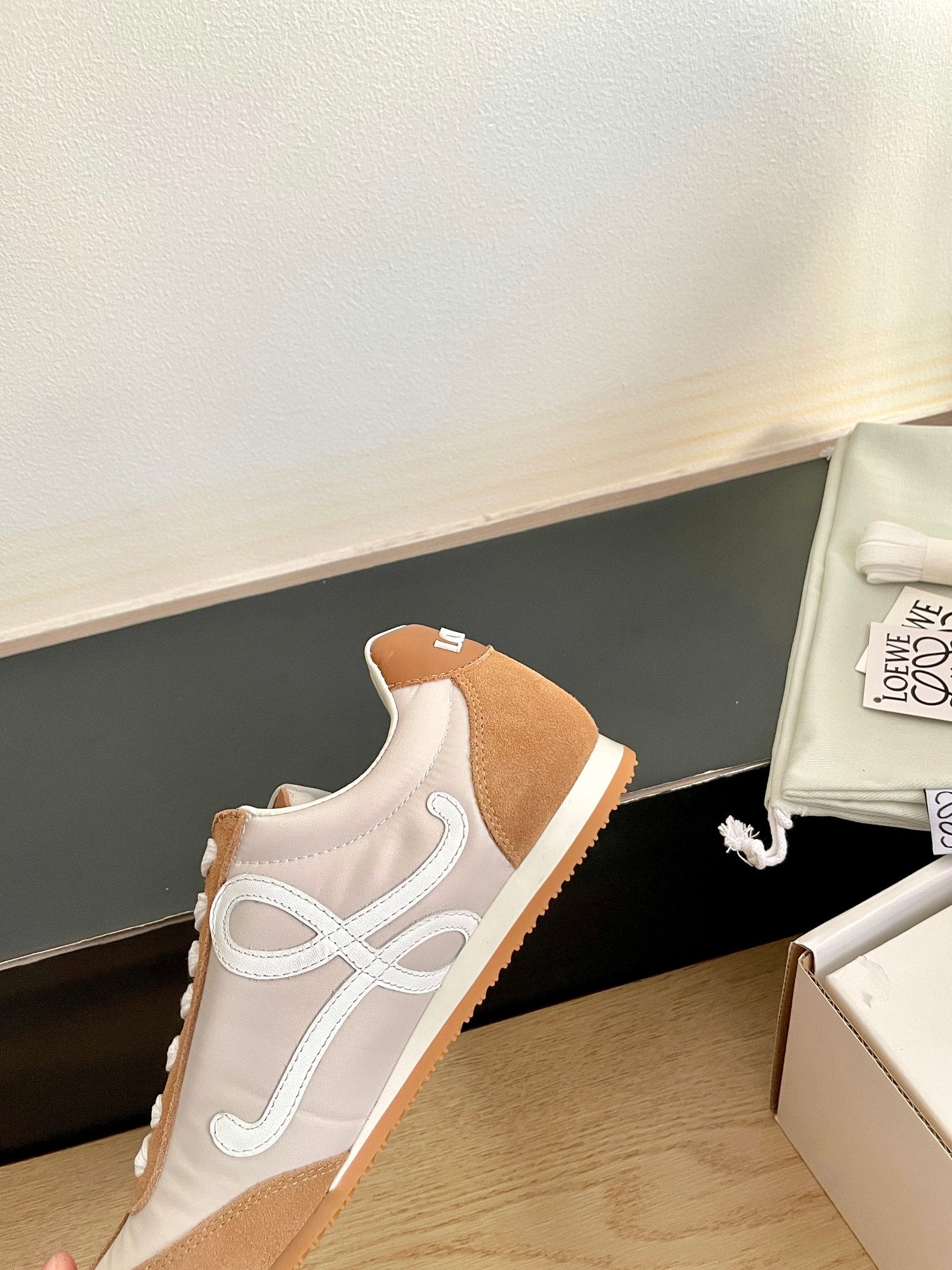 LOEWE 26S BALLET RUNNER 2.0 IN BROWN SUEDE AND BEIGE NYLON