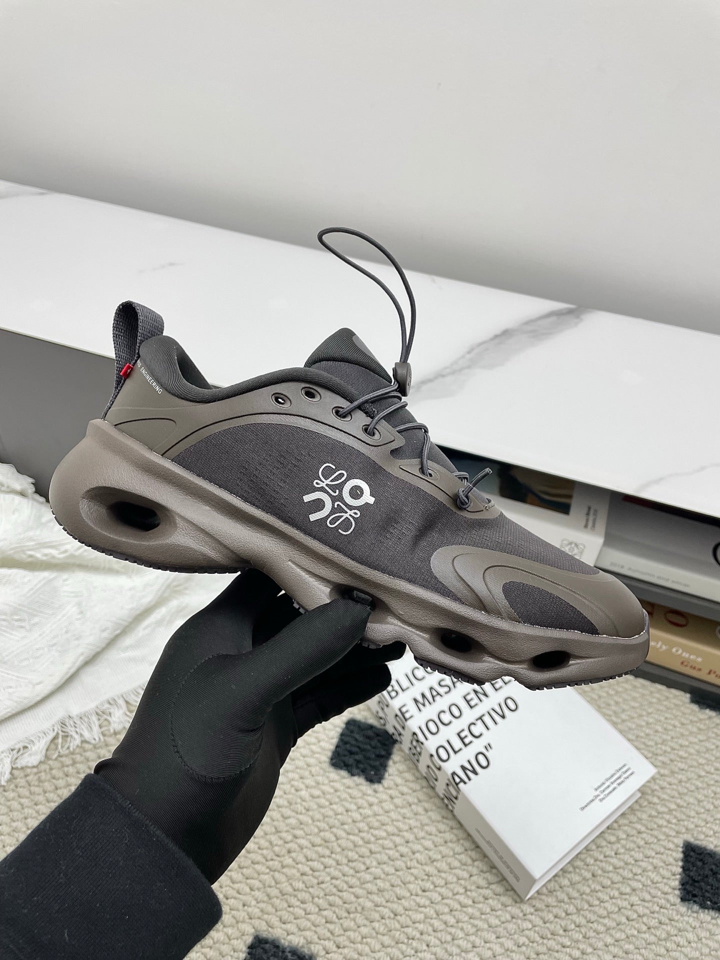 LOEWE 26S CLOUDSOLO SNEAKERS IN DARK BROWN RECYCLED POLYESTER