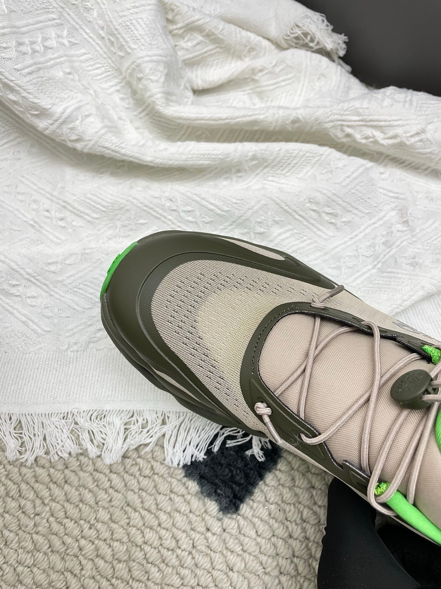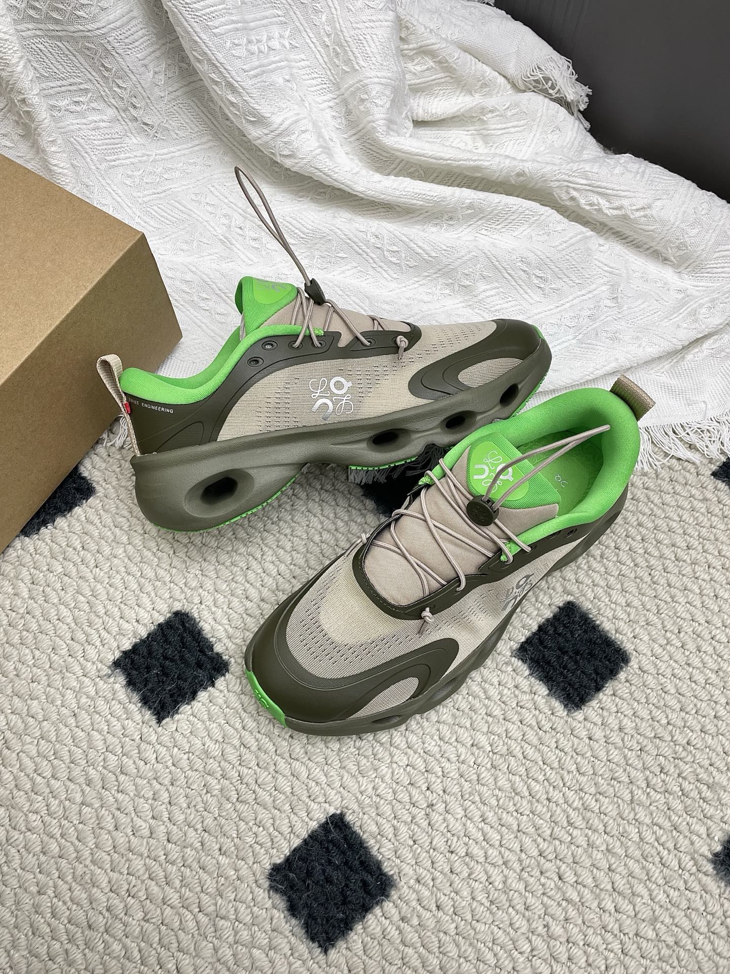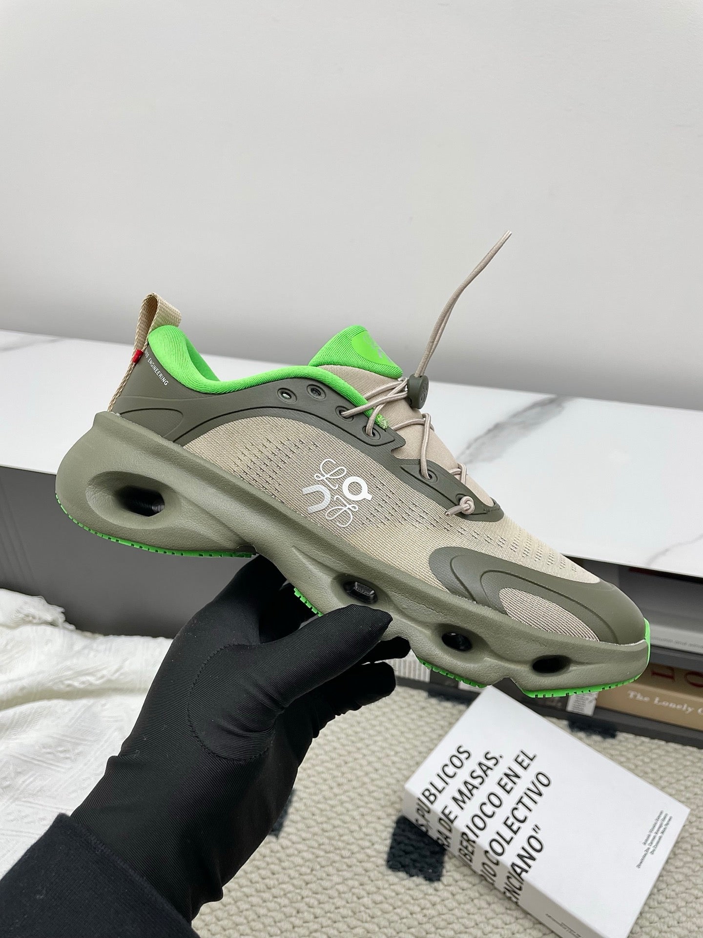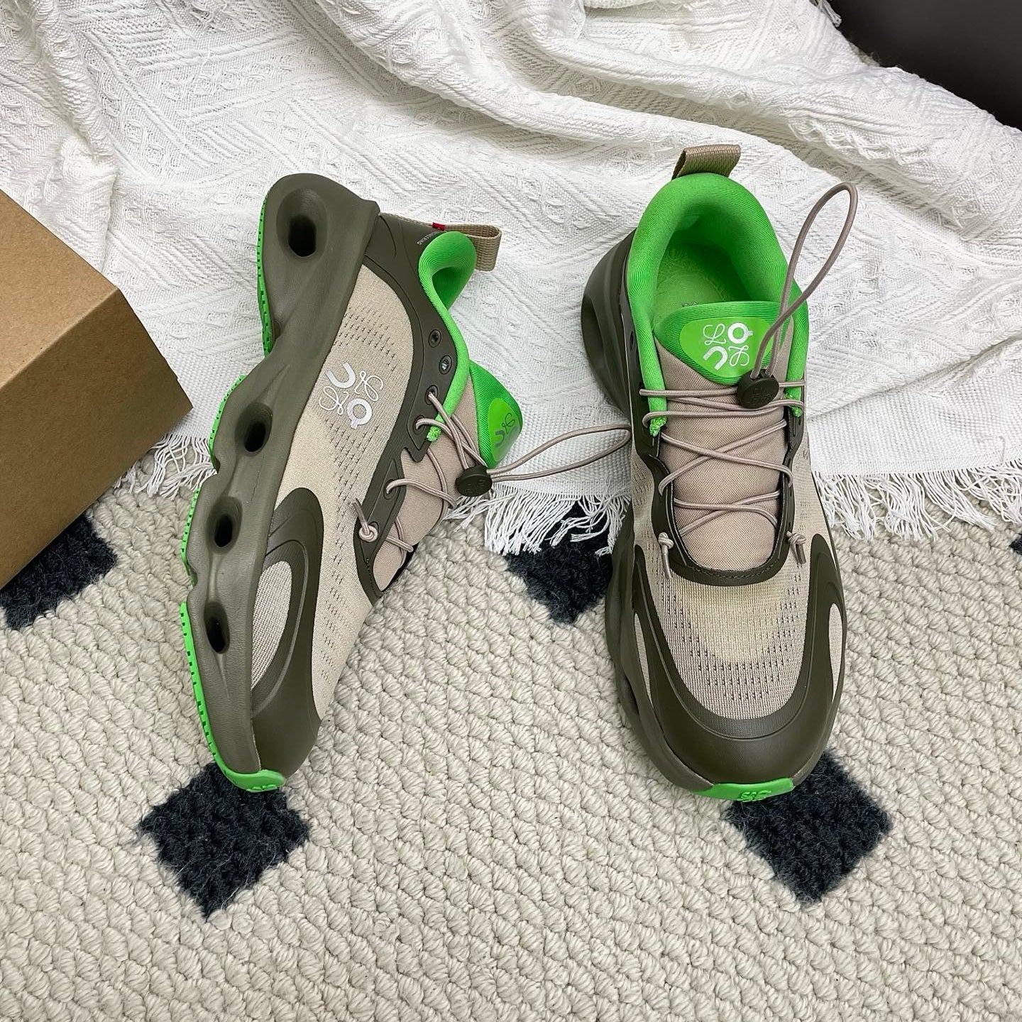 LOEWE 26S CLOUDSOLO SNEAKERS IN OLIVE GREEN AND BEIGE RECYCLED POLYESTER