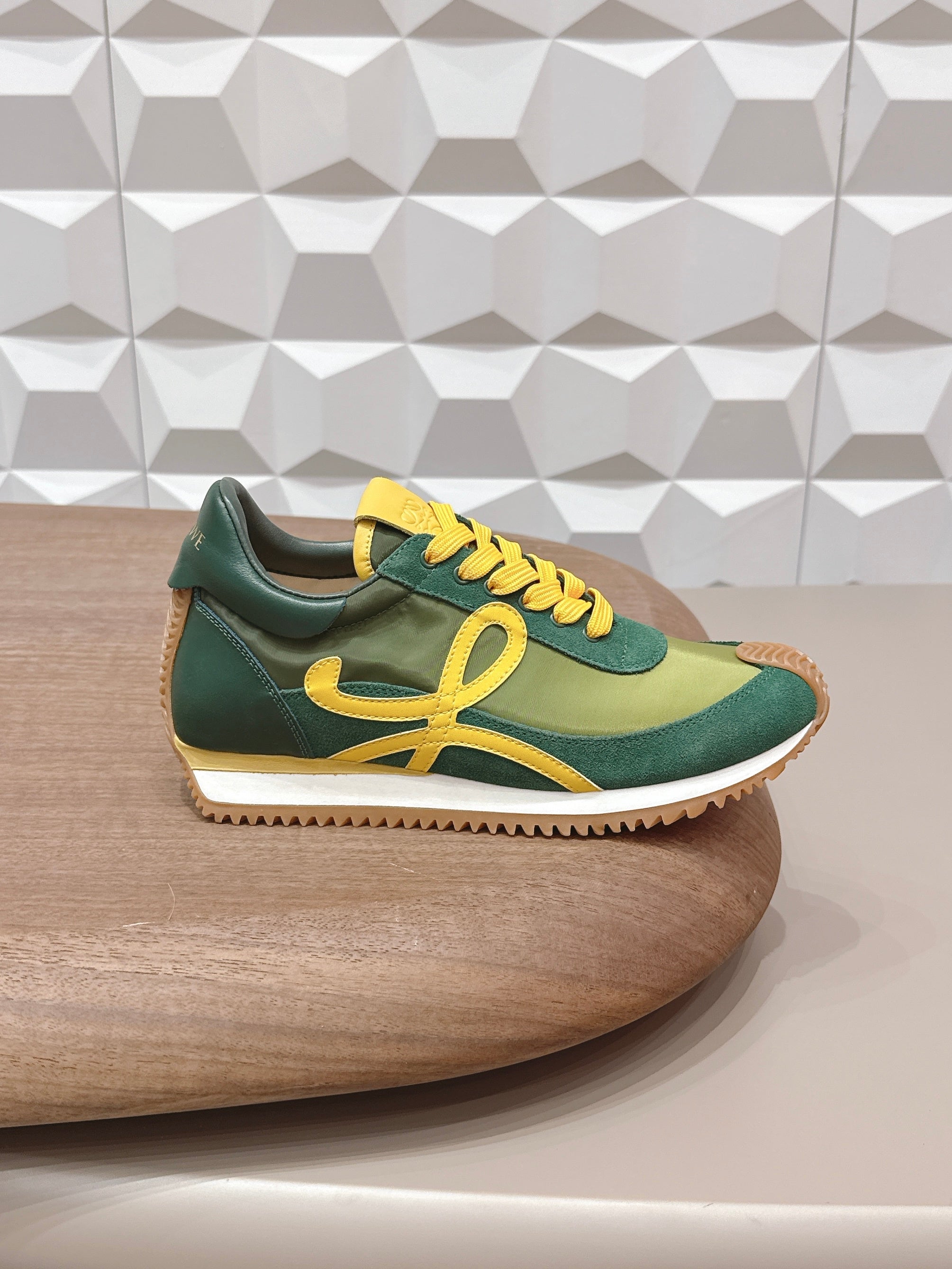 LOEWE 26S FLOW RUNNER SNEAKER IN GREEN AND YELLOW SUEDE AND CALFSKIN