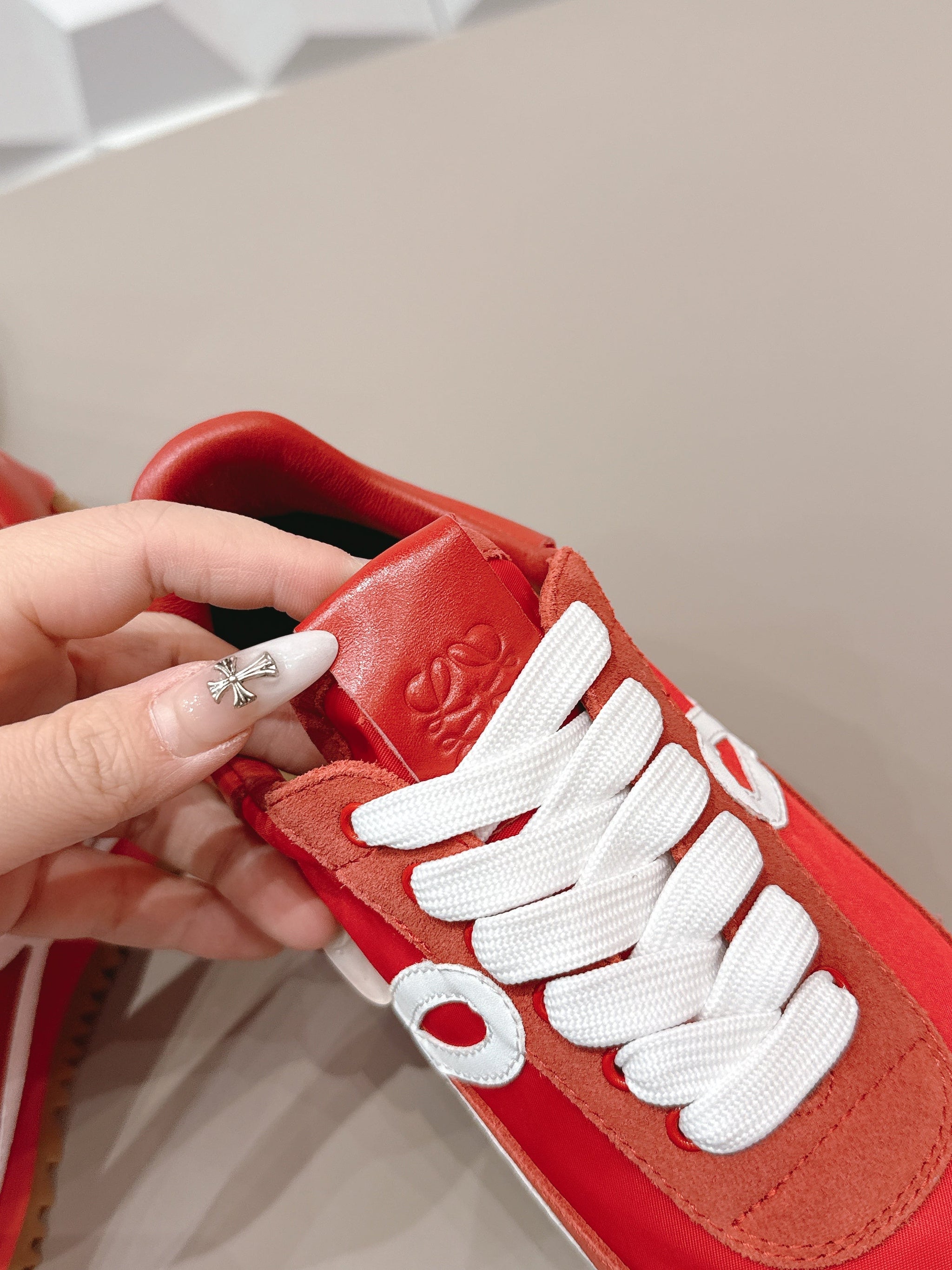 LOEWE 26S FLOW RUNNER SNEAKER IN RED SUEDE AND CALFSKIN