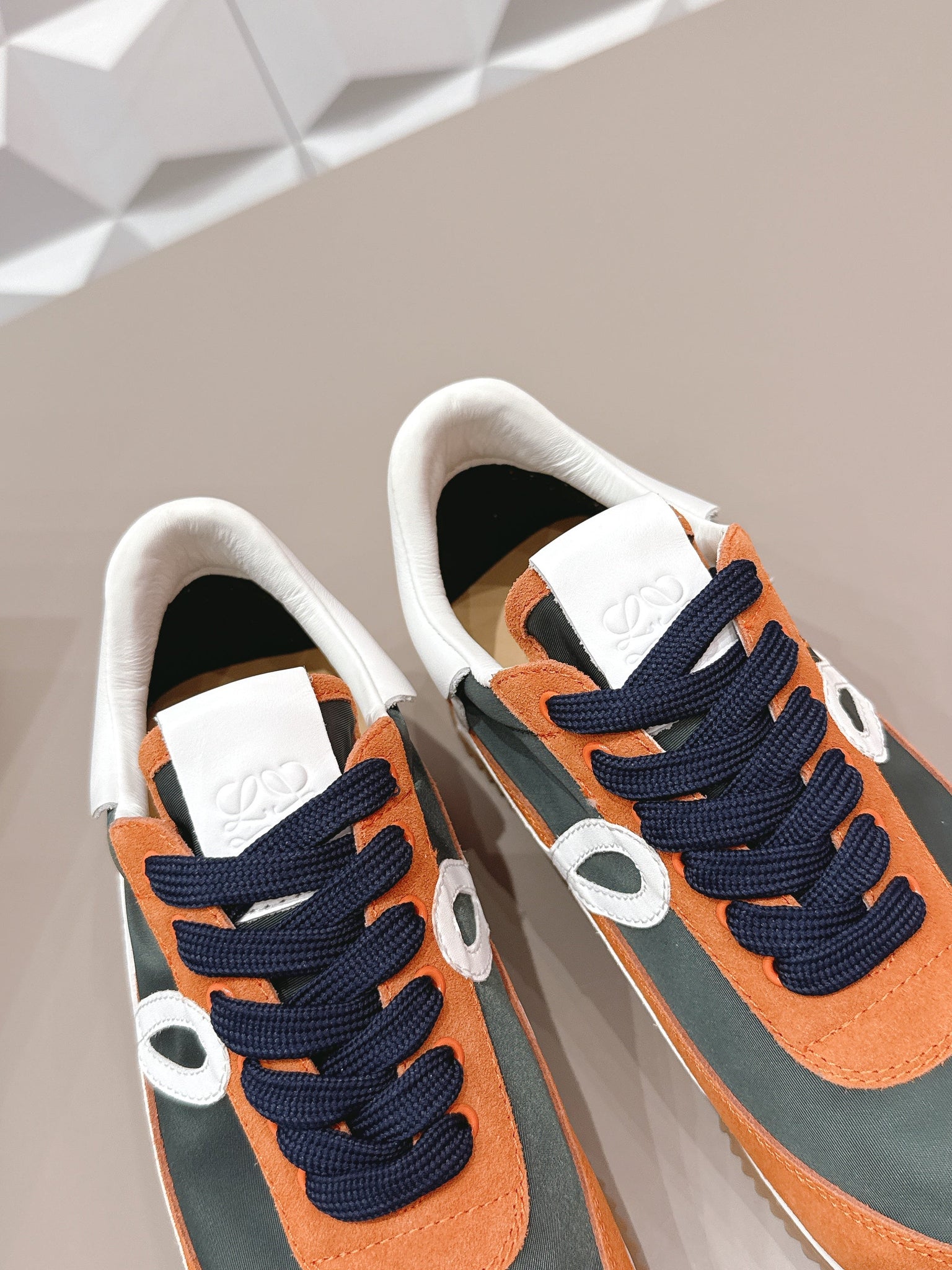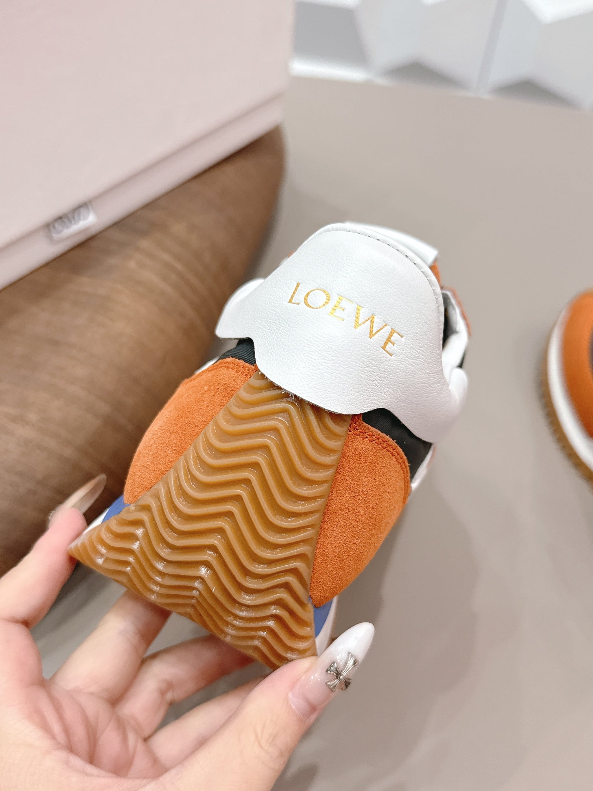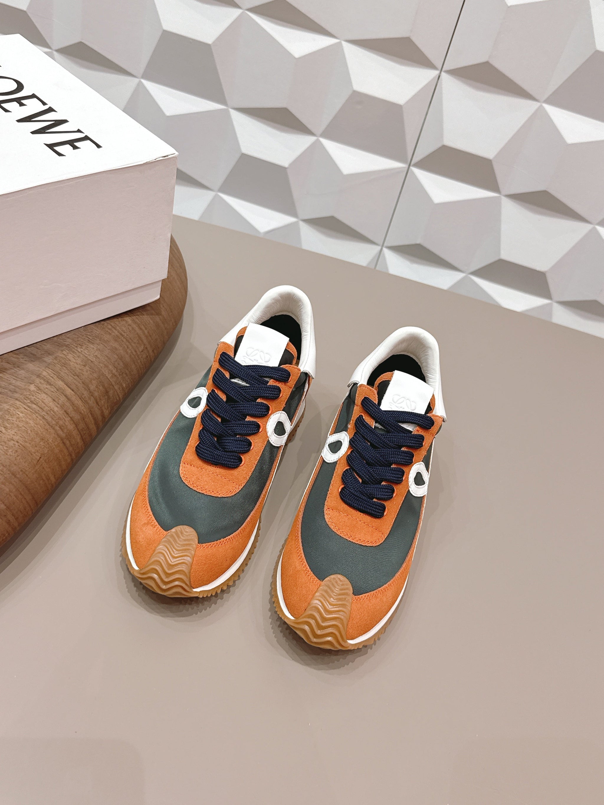 LOEWE 26S FLOW RUNNER SNEAKER IN RUST BROWN SUEDE AND WHITE CALFSKIN